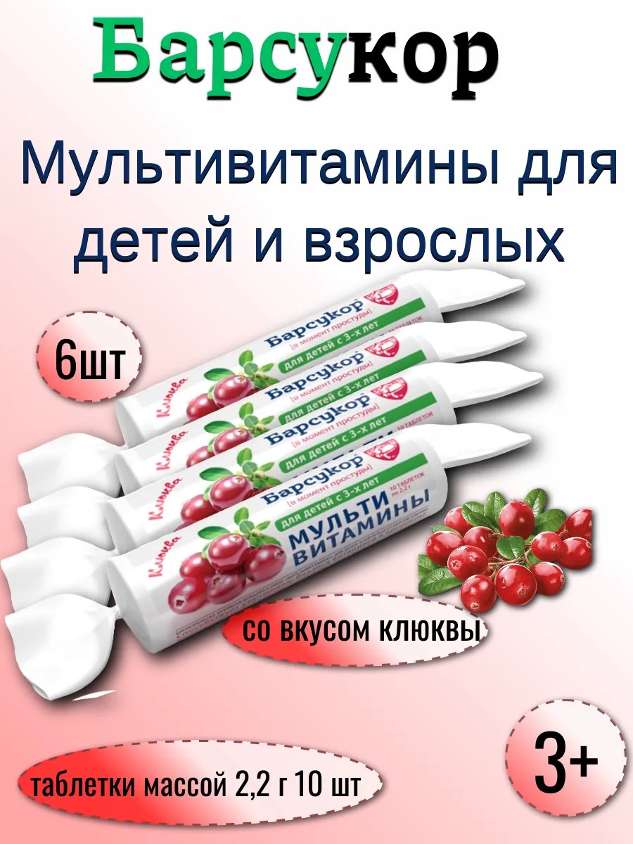 Барсукор Мультивитамины 10табл.по 2,2г со вкусом Клюквы- 6шт