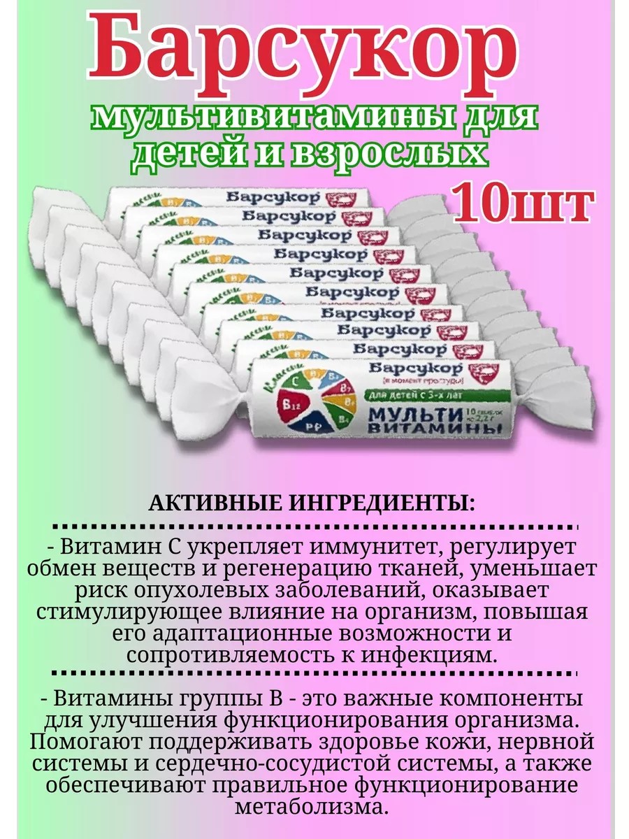 БАРСУКОР Мультивитамины для детей и взрослых 10 шт по 10 табл