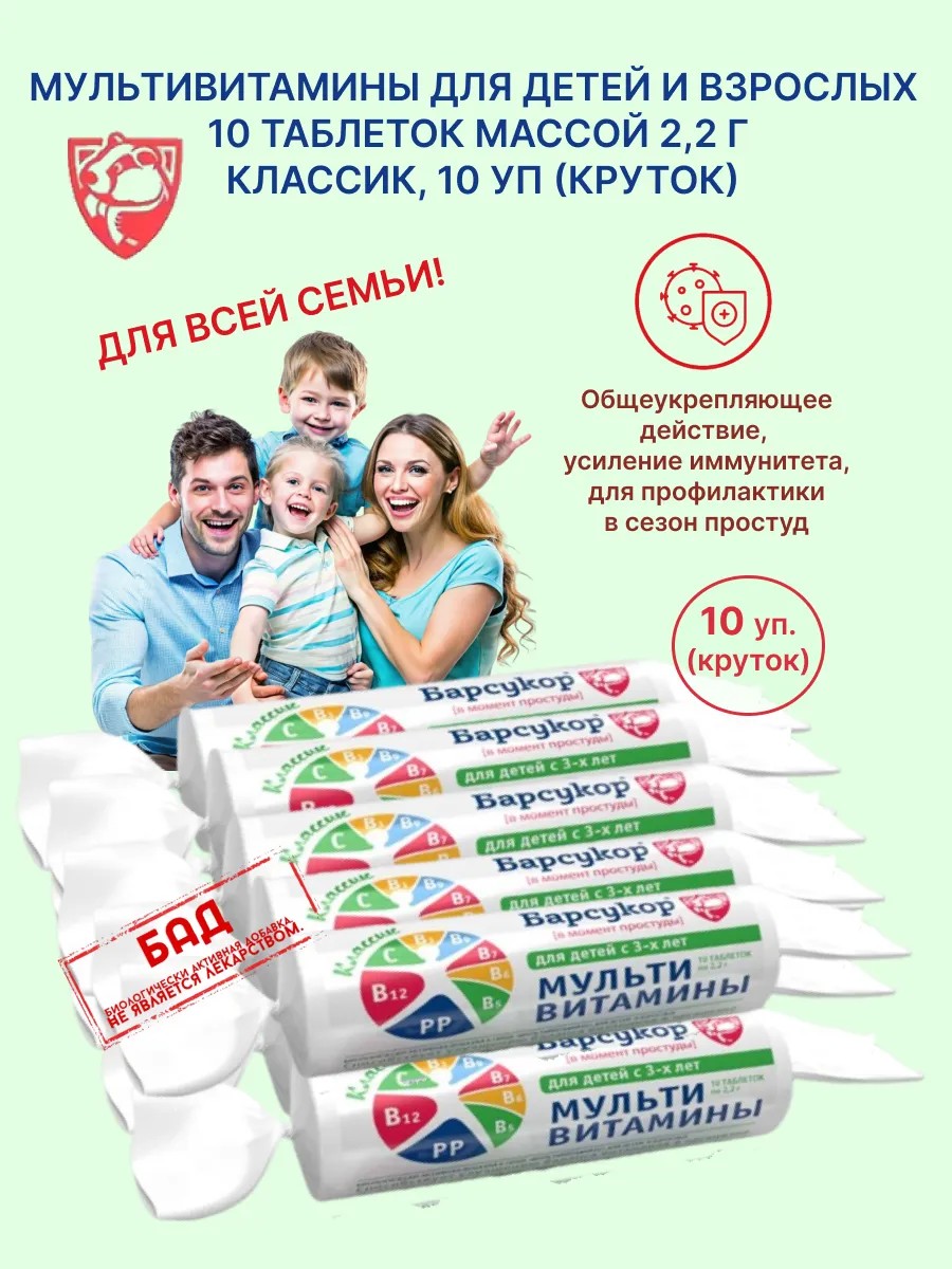 Барсукор Мультивитамины для детей и взрослых 10 табл, 10 уп (круток)