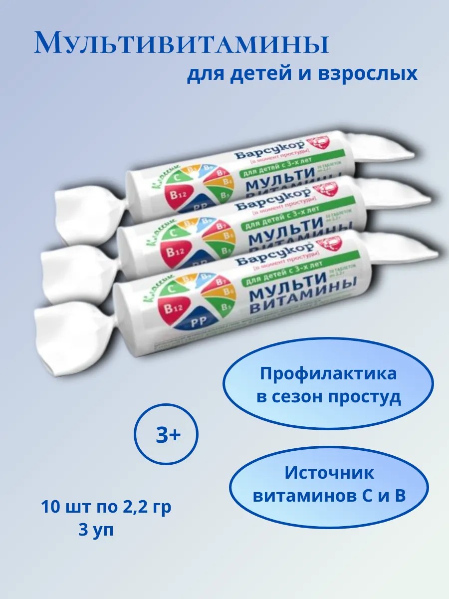 | Комплектация | Барсукор Мультивитамины Для Детей И Взрослых N10 Табл По 2,2г; 3 уп |