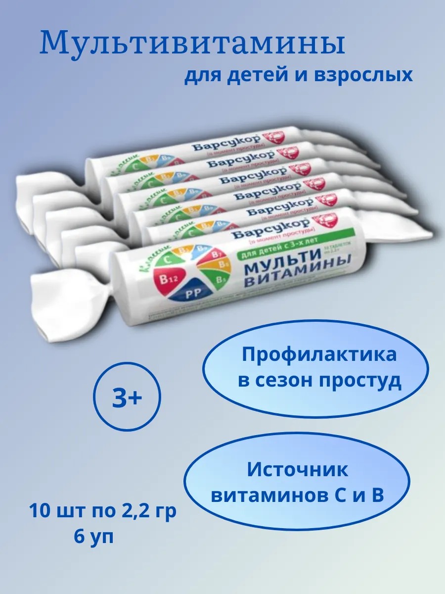 | Комплектация | Барсукор Мультивитамины Для Детей И Взрослых N10 Табл По 2,2г; 6 уп |