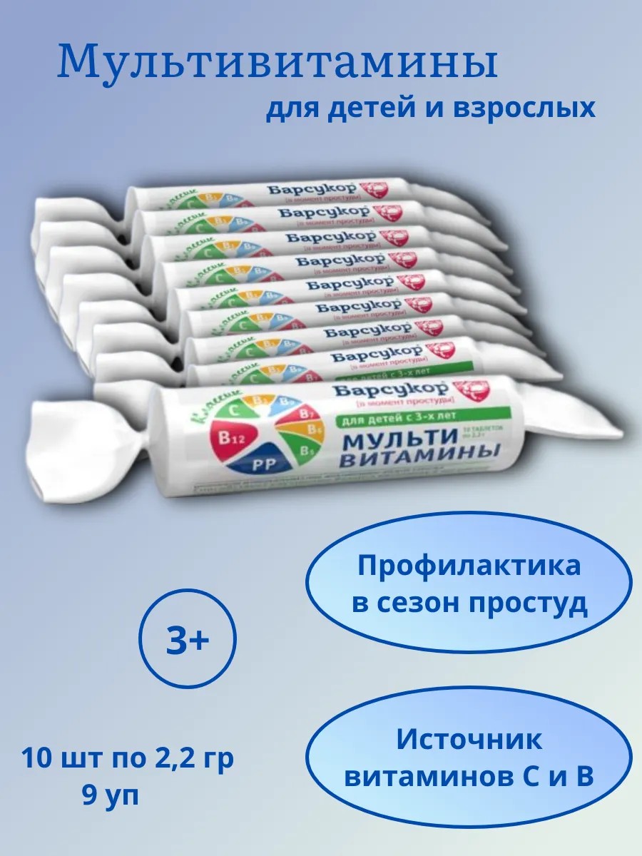 | Комплектация | Барсукор Мультивитамины Для Детей И Взрослых N10 Табл По 2,2г; 9 уп |