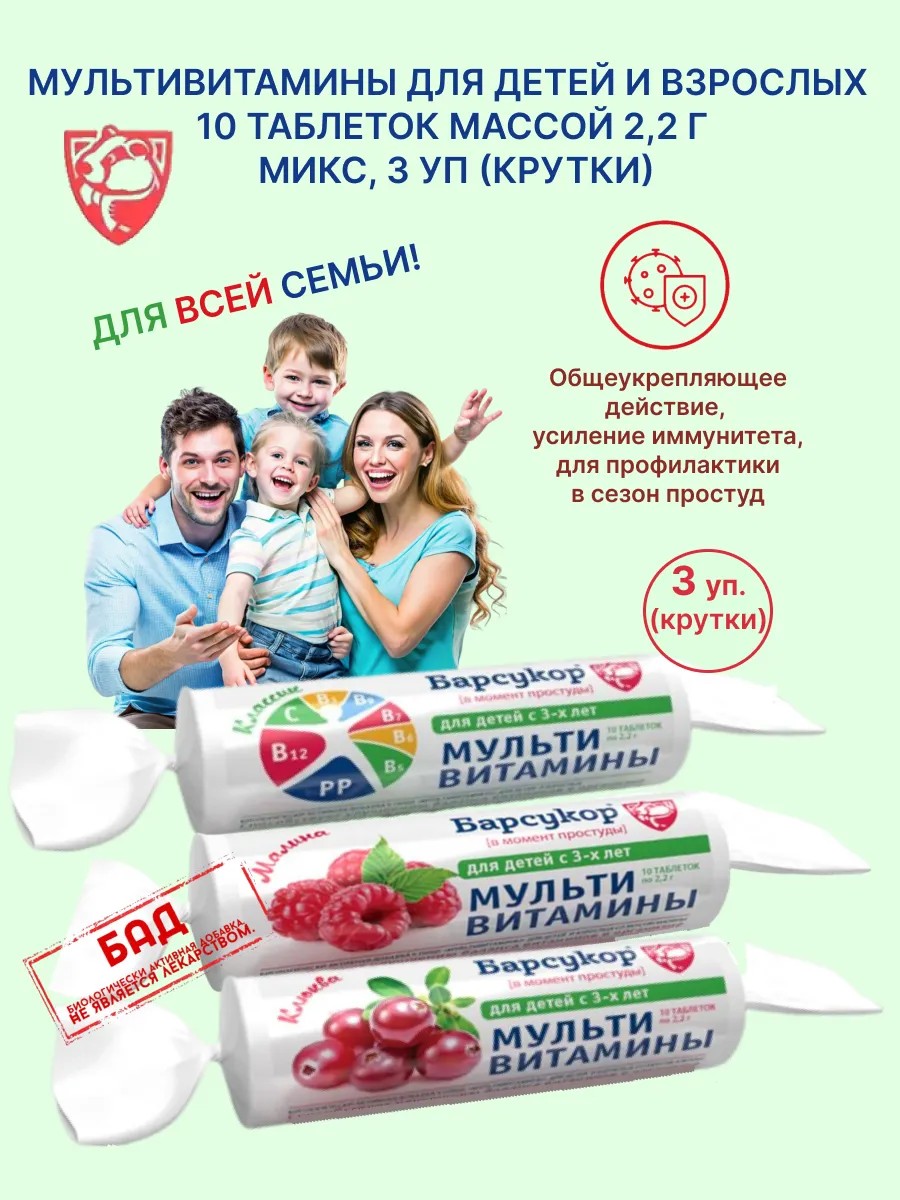 Барсукор Мультивитамины для детей и взрослых микс 10 табл, 3 уп (крутки)