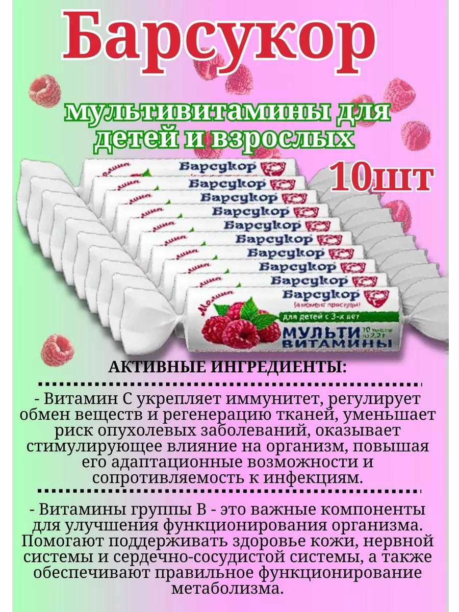 БАРСУКОР Мультивитамины для детей и взрослых малина,10 шт по 10 табл