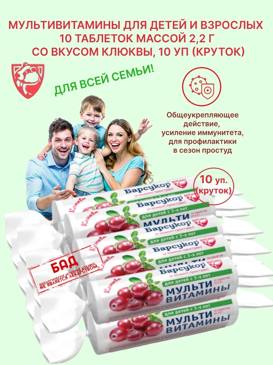 Барсукор Мультивитамины со вкусом клюквы 10 табл, 10 уп (круток)