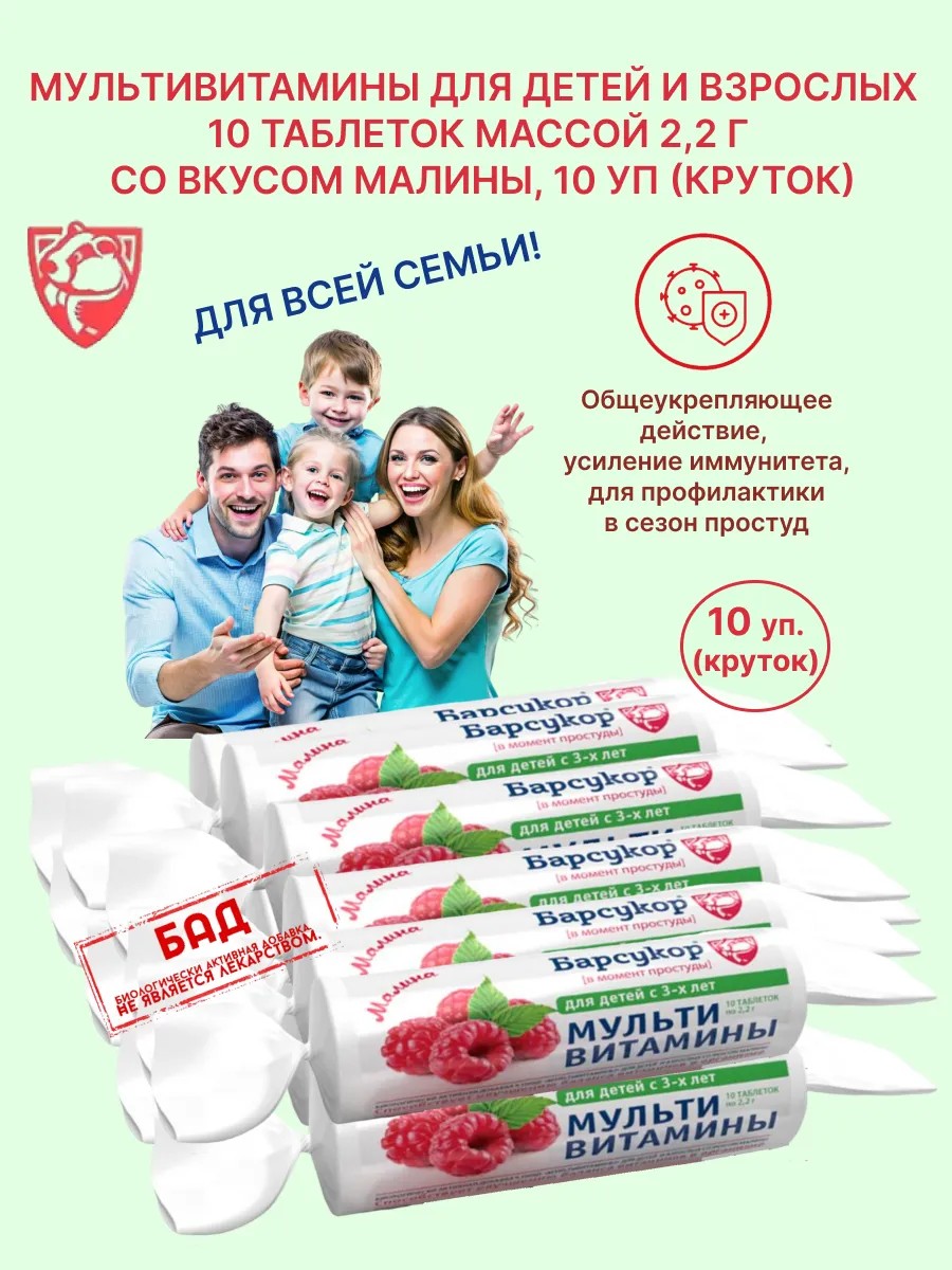 Барсукор Мультивитамины со вкусом малины 10 табл, 10 уп (круток)