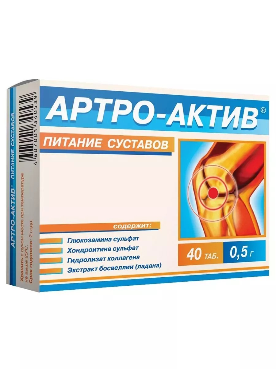 Артро-актив – это биологически активная добавка к пище, которая помогает поддерживать здоровье суставов. Он содержит компоненты, которые способствуют повышению эластичности и гибкости суставов, а также улучшению их движения. Препарат может применяться для профилактики заболеваний суставов или в качестве комплексной терапии при таких заболеваниях. Артро Актив содержит натуральные ингредиенты, которые оказывают положительное воздействие на организм человека. Рекомендуется принимать препарат по 2 таблетки 2 раза в день после еды. Упаковка содержит 40 таблеток, массой 0,5 г каждая.