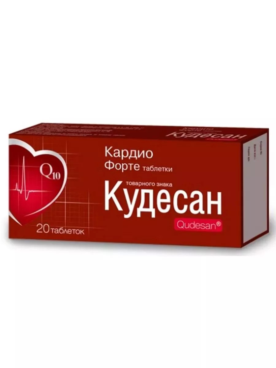 Cardio Forte tablets (brand name "Kudesan") are a dietary supplement designed to support cardiovascular health. Each package contains 20 tablets weighing 0.4 g. This product contains Ubiquinone (Coenzyme Q10) and Vitamin E. These components help increase exercise tolerance and reduce fatigue. They also protect the heart from free radicals. This product is not a medicine and does not replace the advice of a specialist, so it is recommended to consult a doctor before use.