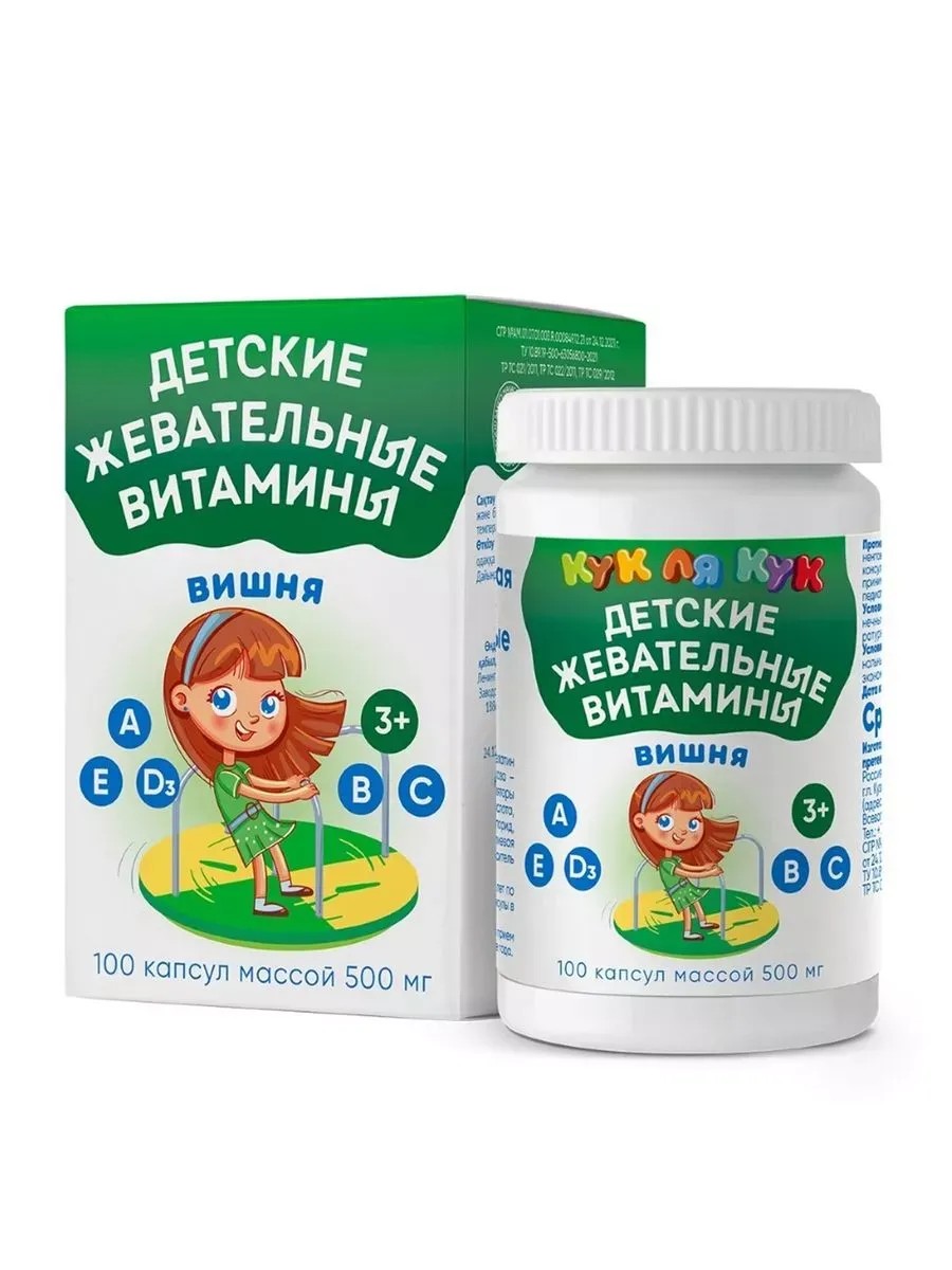 | Trade name | Biologically active food supplement "Children's chewable vitamins 3+" with orange/or tutti-frutti/or cherry/or blackcurrant flavor. Release form: capsules weighing 500 mg / 700 mg. |