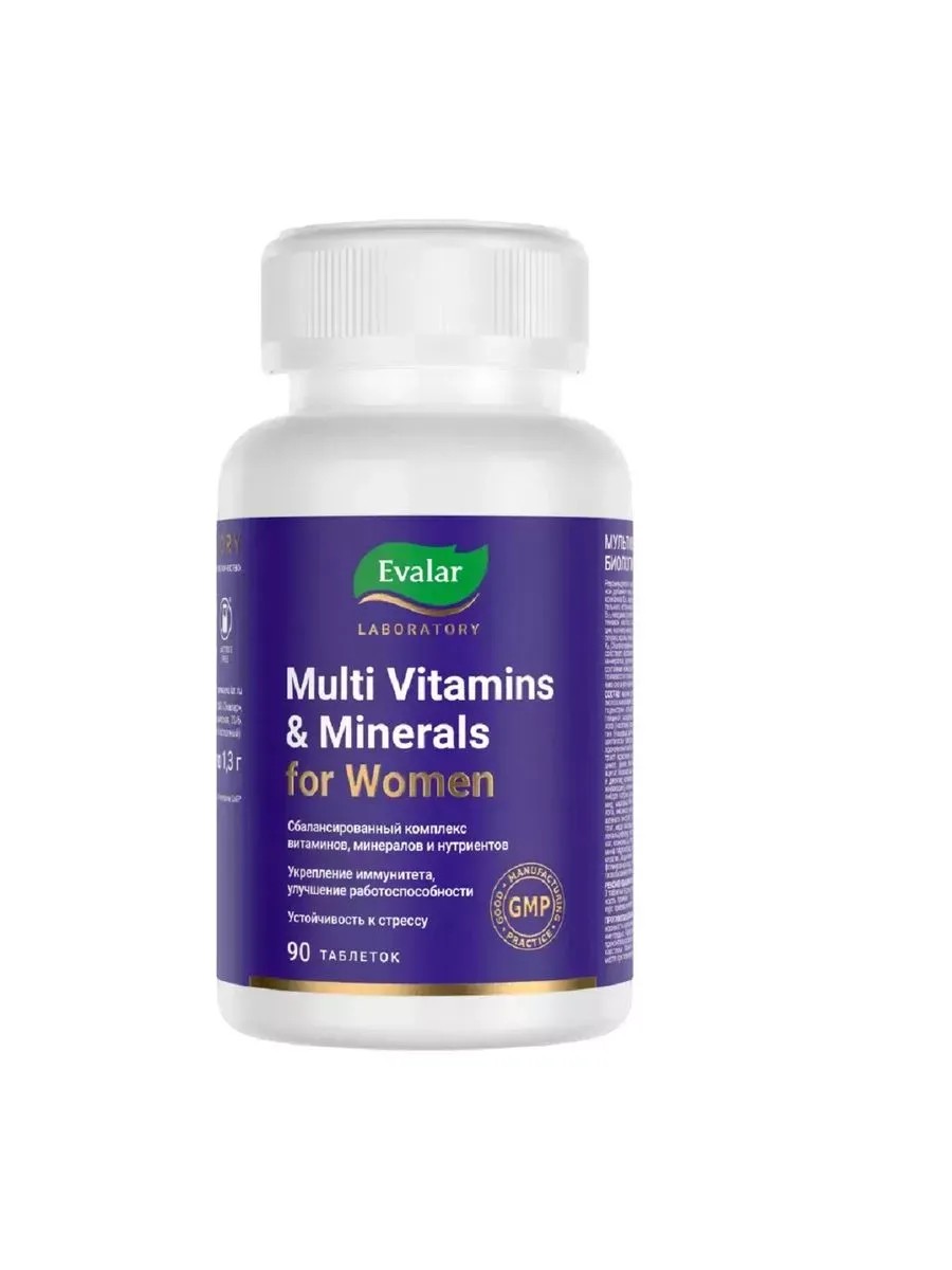 The innovative "Multivitamins and Minerals for Women" complex from Evalar Laboratory contains ingredients for maintaining beauty and preventing aging: hyaluronic acid, ceramides and keratin, plant extracts, and vitamins.
