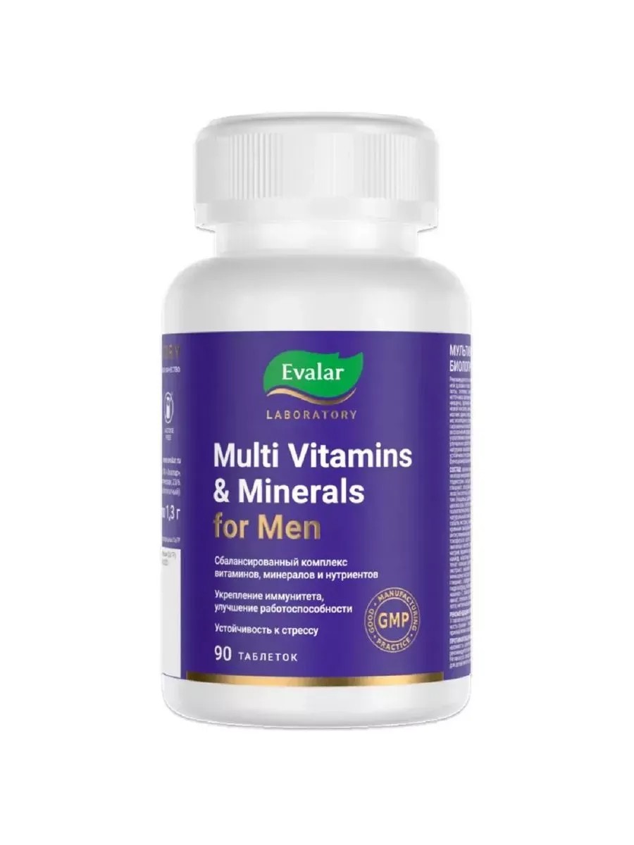 В состав витаминно-минерального комплекса для мужчин от Evalar Laboratory входят: