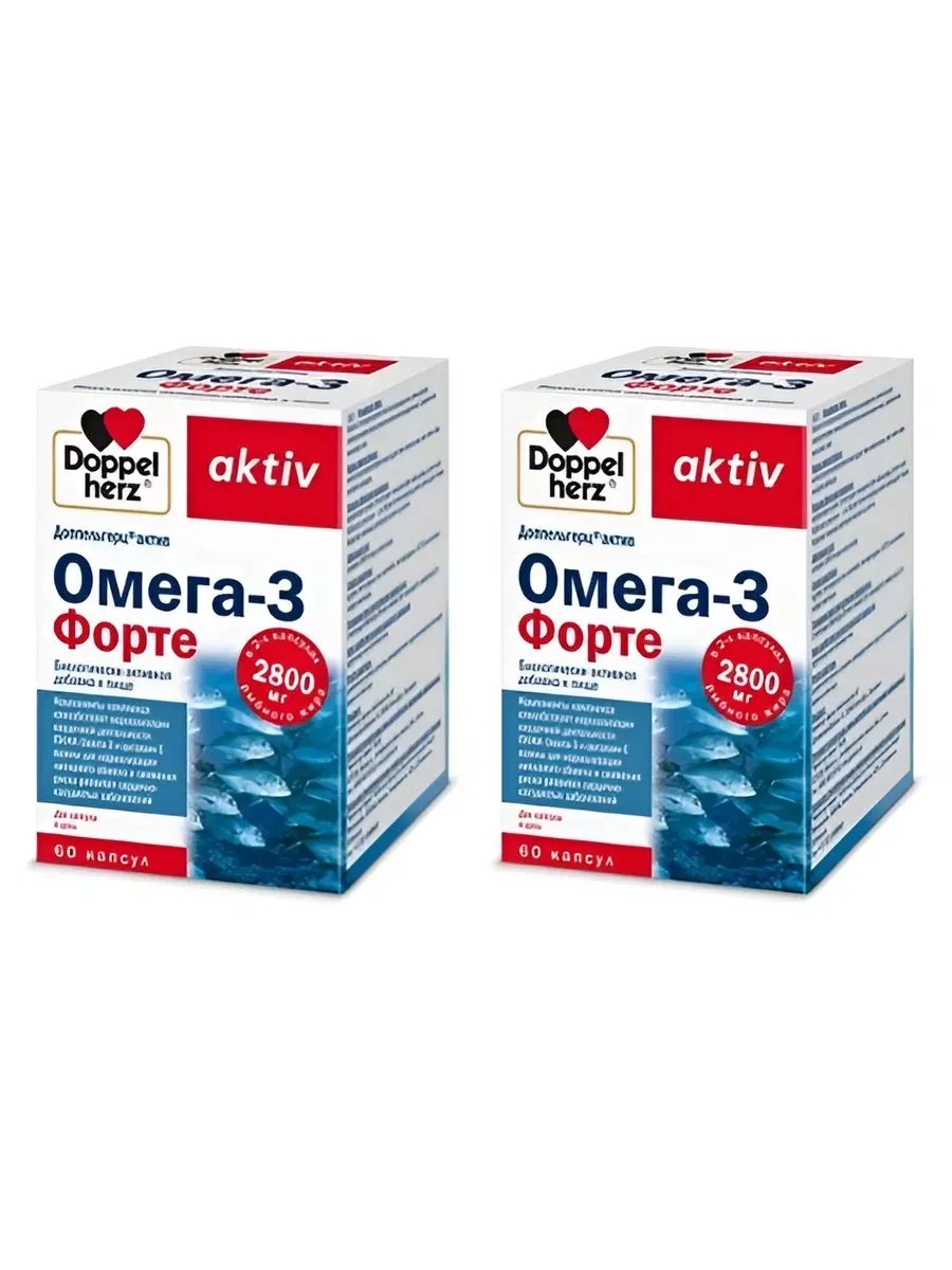Omega-3 PUFAs and vitamin E are important for normalizing lipid metabolism and reducing the risk of cardiovascular diseases. The components of the complex help normalize cardiac function. 2 capsules (daily dose) contain: Qty. % of the recommended daily intake Omega-3 PUFAs 970 mg 49 ** including: - eicosapentaenoic acid 570 mg 95 ** - docosahexaenoic acid 970 mg 380 mg 54 ** Vitamin E 40 mg 400 ** does not exceed the upper tolerable intake level ** adequate intake level Cardiovascular diseases are the most formidable pathology in humans, leading to tragic consequences. To prevent these diseases, an active lifestyle and proper nutrition, limiting saturated fatty acids and cholesterol, as well as adequate consumption of essential omega-3 polyunsaturated fatty acids (PUFAs), are crucial. The best source of omega-3 fatty acids is northern sea fish, such as salmon, tuna, and trout. In real life, it can be difficult to consistently consume sufficient amounts of seafood daily. Regularly taking the dietary supplement Doppelherz Active Omega-3 Forte can solve these problems. Fish oil contains essential omega-3 polyunsaturated fatty acids (PUFAs). Omega-3 acids have a broad effect on various body systems. Based on our own research, we can confirm that omega-3 PUFAs reduce triglyceride levels. In addition, a moderate decrease in total cholesterol and low-density lipoprotein cholesterol levels was recorded. Vitamin E is a fat-soluble vitamin that helps prevent cholesterol deposits in the walls of blood vessels, provides cell protection, and protects the heart from damage associated with magnesium deficiency or oxygen deficiency. It also has radioprotective properties and significantly slows the aging process in the body. Thus, the complex of Omega-3 polyunsaturated fatty acids and vitamin E is very important for normalizing lipid metabolism and reducing the risk of cardiovascular diseases, including atherosclerosis. Nutritional value: 2 capsules contain 108.8 kJ/26 kcal, fat 2.8 g, protein 0 g, carbohydrates 0.3 g. Instructions for diabetics: does not contain bread units.