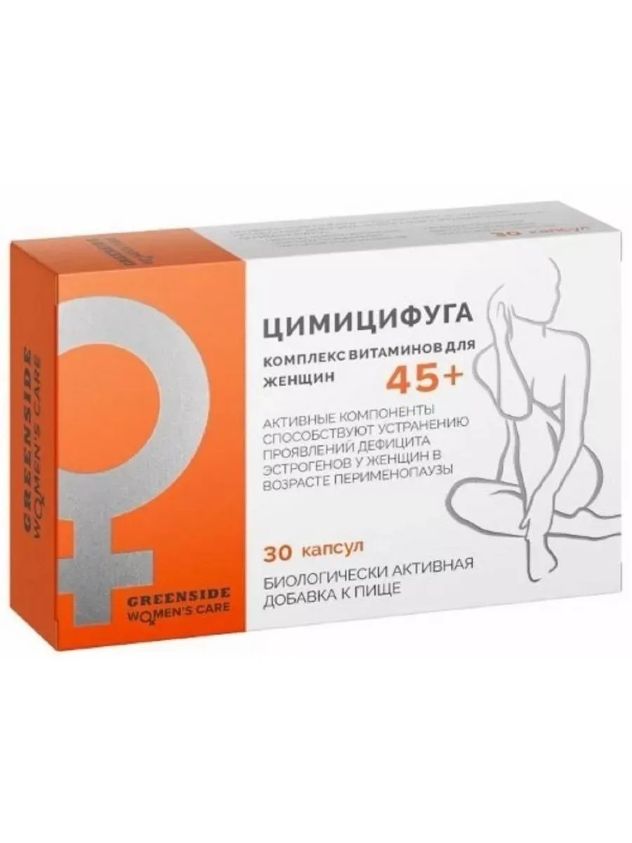 Биологически активная добавка к пище «Цимицифуга с комплексом витаминов для женщин 45+» обладает эстрогенподобными свойствами, способствует устранению проявлений дефицита эстрогенов у женщин в возрасте перименопаузы (приливов, ночной потливости, приступов сердцебиения, нарушений сна и засыпания, перепадов настроения, быстрой утомляемости, сухости кожи и слизистых).Экстракт цимицифуги - негормональное средство. Компоненты, присутствующие в экстракте цимицифуги имеют эстрогеноподобное действие, способствуют уменьшению выраженности неприятных симптомов, проявляющихся в климактерическом периоде: изменения настроения, апатия, повышенная возбудимость, плохой сон, повышенная потливость.