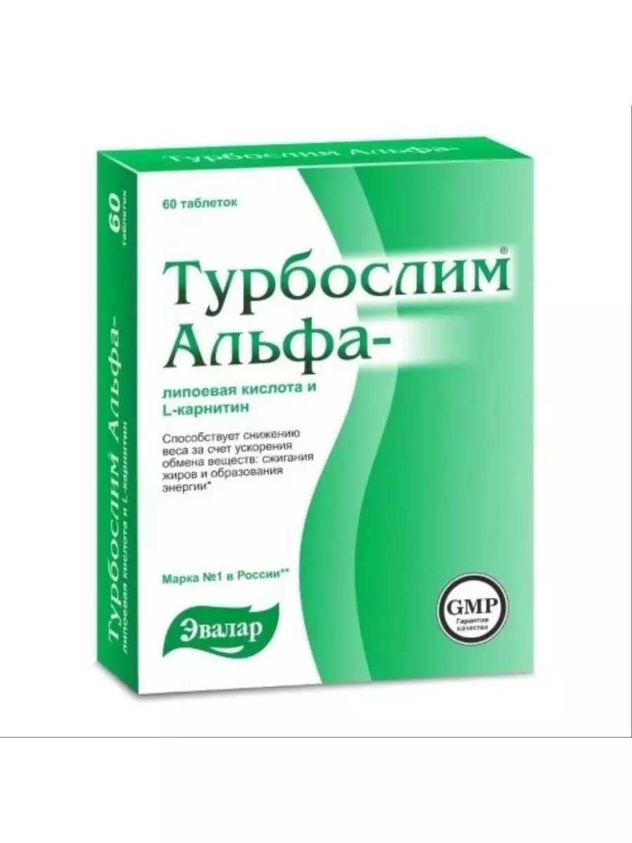Турбослим альфа-липоевая кислота/l-карнитин таблетки - биологически активная добавка (БАД) к пище для ускорения обмена веществ и снижения веса. В составе комбинация альфа-липоевой кислоты и L-карнитина является оптимально сбалансированной и способствует эффективному ускорению обмена веществ и переработке жиров в энергию. Турбослим Альфа-липоевая кислота и L-карнитин способствует: снижению веса за счёт ускорения обмена веществ; активации метаболизма (улучшению обмена жиров, белков и углеводов в организме); улучшению энергетического баланса (выработке энергии) в организме; преобразованию жировых запасов в энергию путем сжигания жиров и снижения жировой массы тела. Также альфа-липоевая кислота: препятствует образованию морщин и пигментных пятен; является антиоксидантом - защищает организм от свободных радикалов, усиливая действие других антиоксидантов; способствует повышению работоспособности и выносливости. Рекомендованный курс приема - не менее месяца. Данное средство ускоряет процесс похудения, если его прием совмещать с физическими упражнениями и сбалансированным питанием.