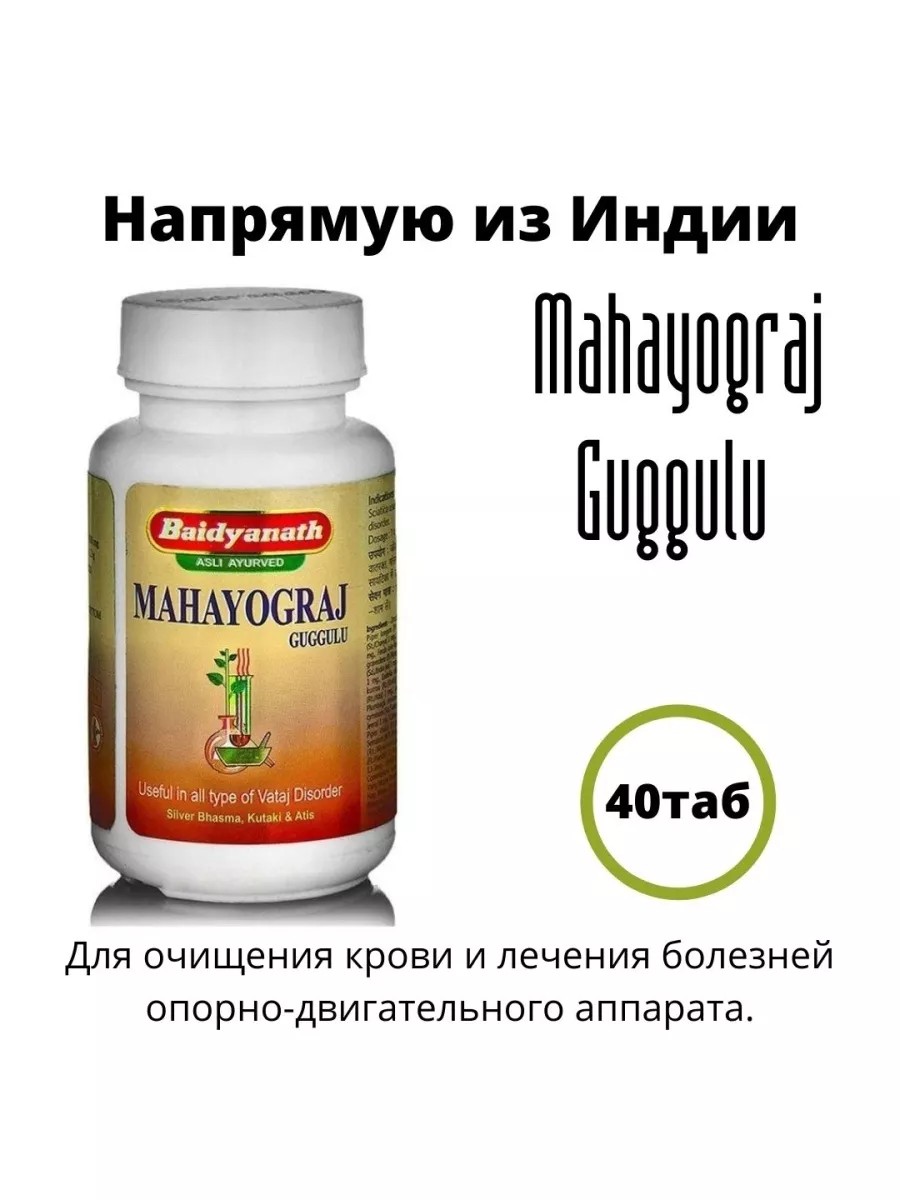 Mahayograj Guggulu Baidyanath (40 tablets)Mahayograj Guggulu Baidyanath (Mahayograj Guggulu Baidyanath) is an Ayurvedic remedy for blood purification and treatment of diseases of the musculoskeletal system.
