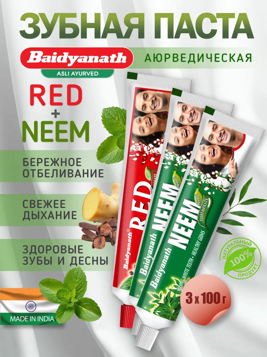 Baidyanath Индийская зубная паста Baidyanath Ред 1 + Ним 2