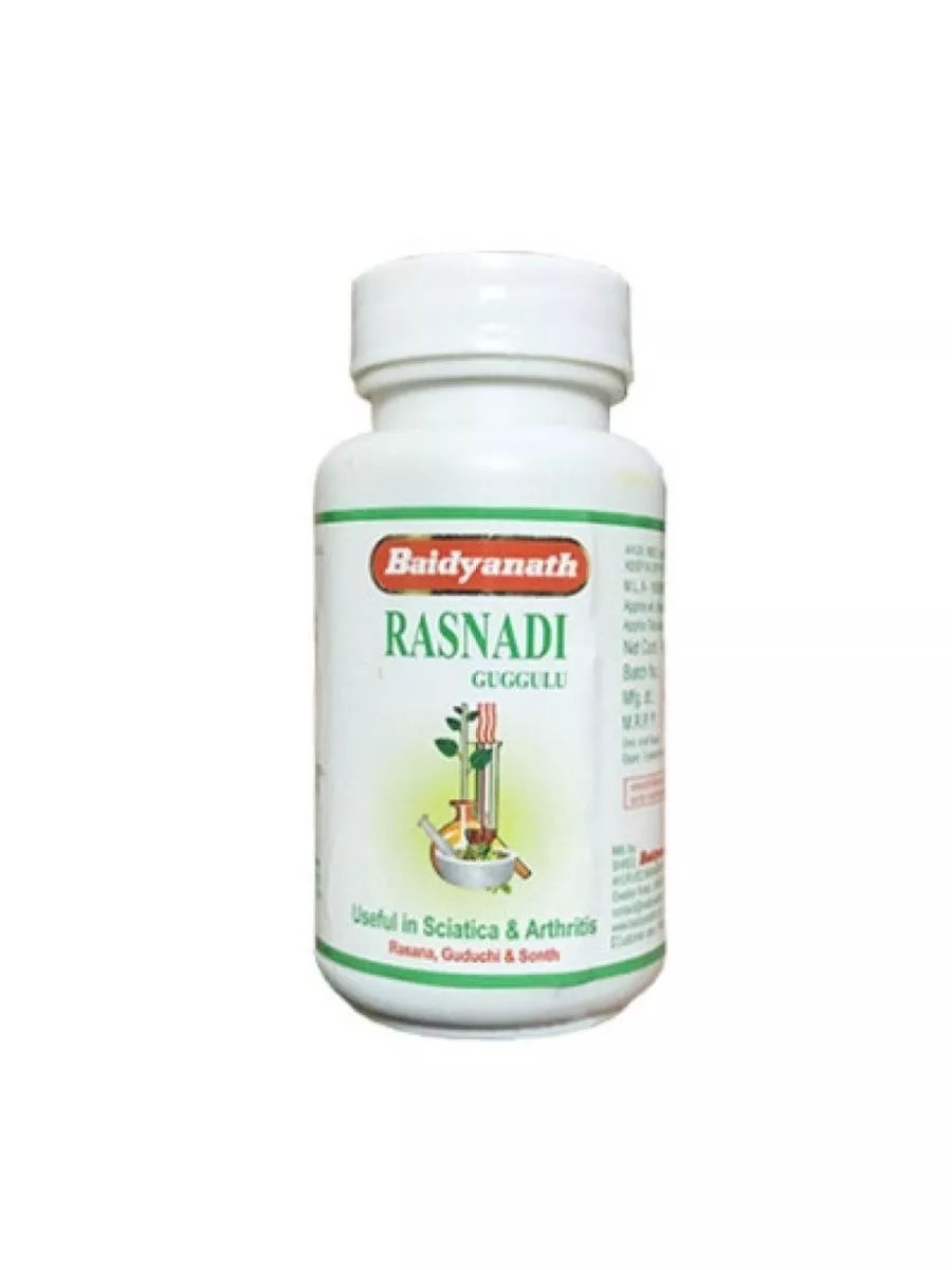 Раснади гуггул Байдинахт (Rasnadi Guggulu Baidyanath) Противовоспалительное Для суставов 80 таб. – это аюрведический растительный препарат в форме таблеток с мощным противовоспалительным действием, который широко используется для лечения заболеваний опорно-двигательного аппарата, таких как артрит, ревматизм, радикулит, подагра, боли в суставах, люмбаго, шейный спондилез, растяжение связок и вывихи суставов. Препарат снимает воспаления, боли, припухлости, возвращает суставам свободу движения, предупреждая тугоподвижность и ограничение объема движений.