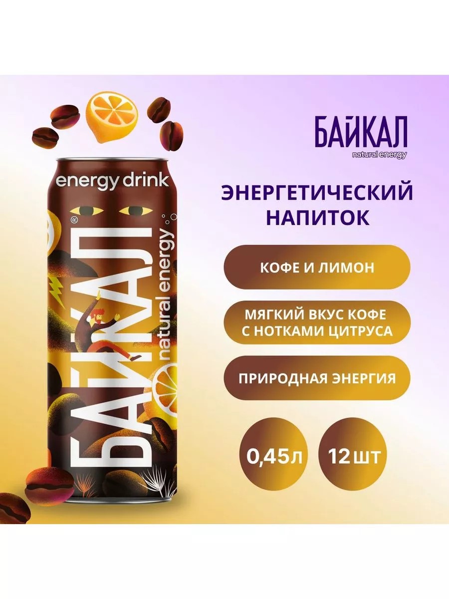Энергетические напитки БАЙКАЛ natural energy – натуральные энергетические напитки нового поколения с естественным вкусом, так как они содержат природные тонизирующие ингредиенты – натуральный кофеин и элеутерококк, обладают насыщенным и естественным вкусом, без таурина, без консервантов. Уникальный вкус кофе-лимон оставит неравнодушными любителей кофейных напитков