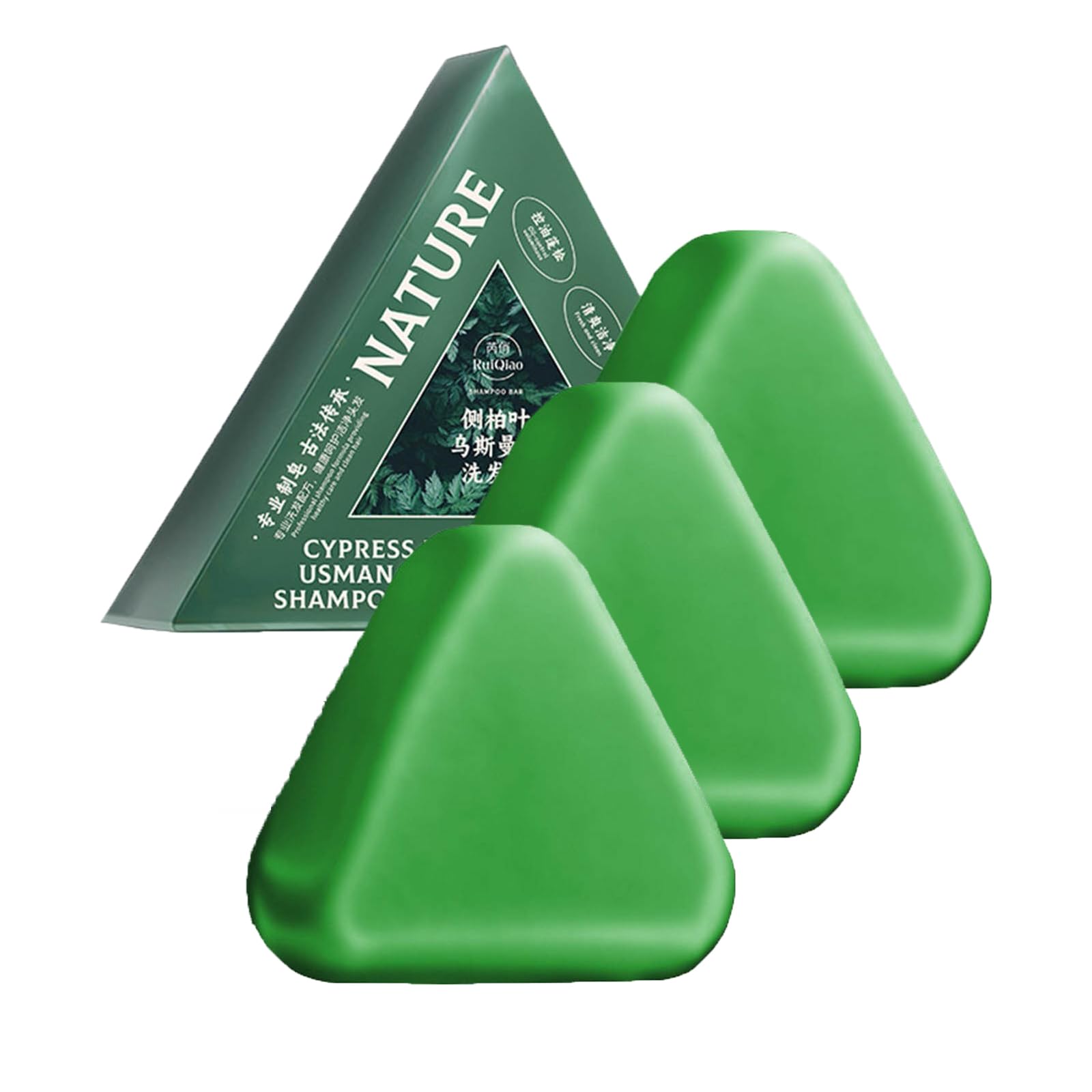 Compact and easy to carry: The small triangular design of the Nature Triangle Shampoo Bar slips easily into your bag for travel or the gym without spilling. Enjoy clean, light, and manageable hair anytime, anywhere. Rich, dense lather: The Nature Triangle Shampoo Bar produces up to three times more lather than when rubbed by hand, providing a refreshing cleansing experience while gently removing daily buildup. Triangular shampoo bar: The convenient design of the Nature Triangle Shampoo Bar prevents slipping in the shower, making washing more enjoyable and comfortable. Promotes nourishing growth: The shampoo bar has been specially formulated with knotweed and ginseng to promote naturally healthy hair, strengthen strands, and improve hair structure. This leaves your hair stronger and more resilient after every wash. Herbal blend: Nature Triangle Bar shampoo contains nine traditional plant compounds, including Biota Orientalis leaf, Isasati root, ginseng and Polygonum Multiflorum, to nourish the scalp and naturally nourish the hair.