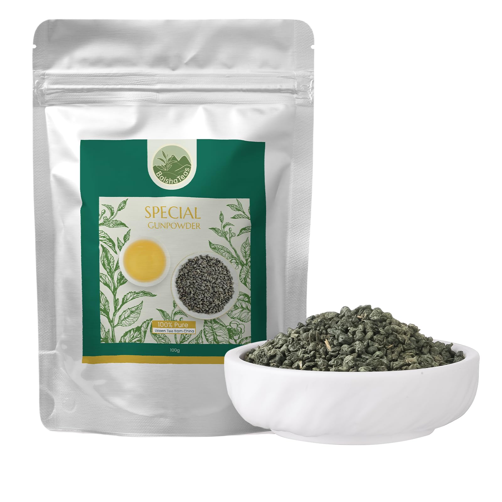 BaishaTeas Th vert Gunpowder - 250 g - Feuilles de th roul es en forme de boules - Th vert de haute qualit provenant directement de Chine (100g)