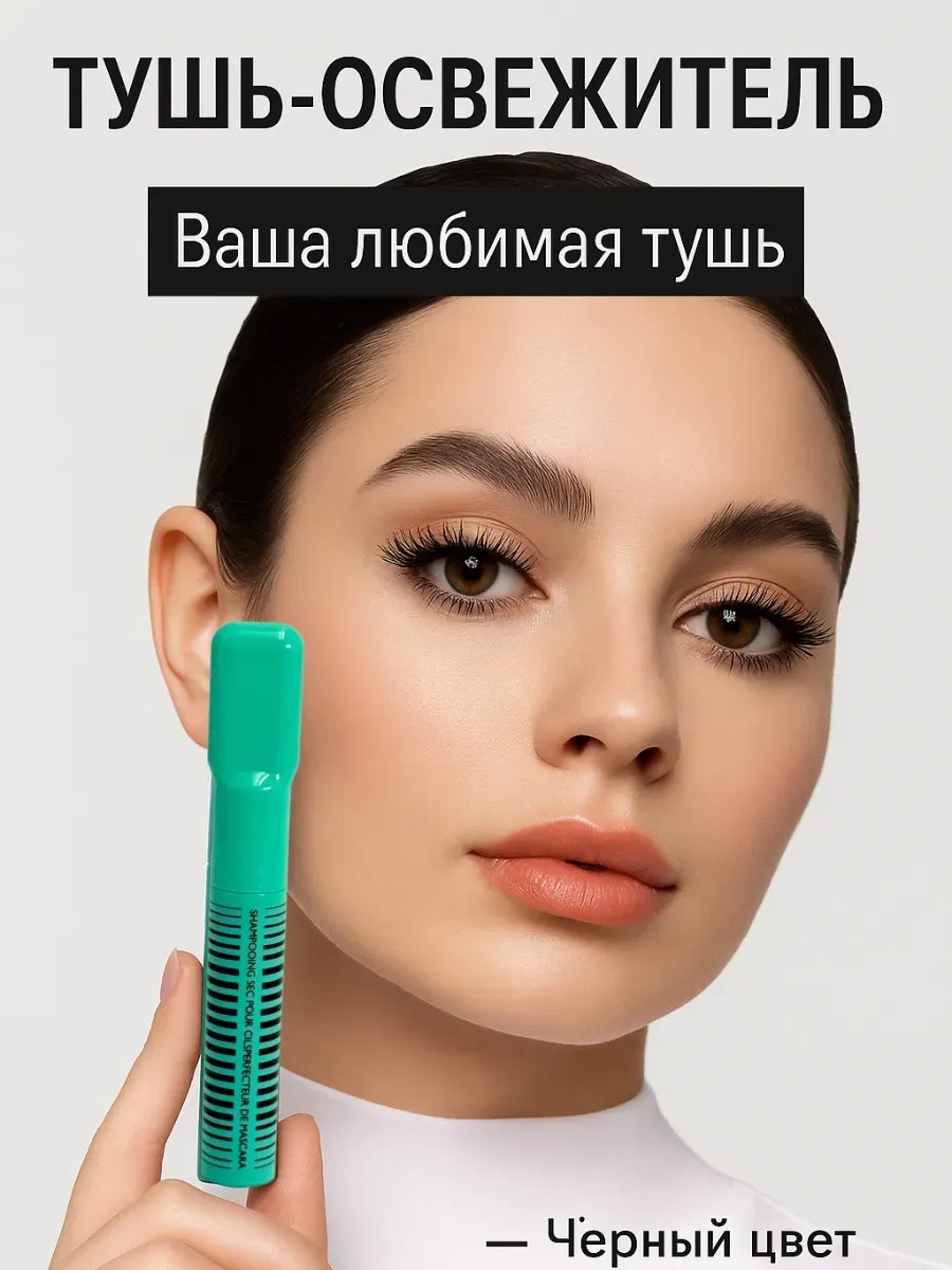 Тушь-освежитель для ресниц создана для тех, кто хочет выглядеть безупречно каждый день и при этом заботиться о здоровье и красоте ресниц. Уникальная формула позволяет легко обновлять макияж, придавая ресницам свежесть, объем и выразительность всего за одну минуту. Это средство действует как сухой шампунь для ресниц: оно мягко снимает следы усталости, убирает комки и возвращает насыщенный чёрный цвет, не требуя снятия макияжа.