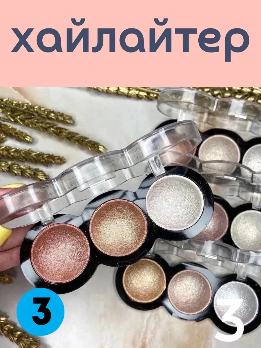 хайлайтер, запечённый хайлайтер, косметика для лица, сияние кожи, макияж, хайлайтер 3 оттенка, корейская косметика, шиммер, контуринг,