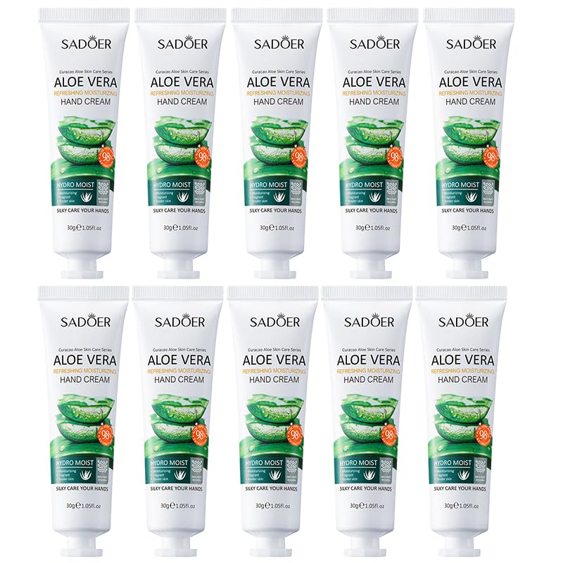 Hydrate and repair your hands anytime, anywhere with this pocket-sized hand cream. Suitable for cracked hand dry hand rough hand Relieves hand problems caused by dry weather, leaving your hands soft, delicate and smooth Specification: Main ingredients: aloe vera extract, natural glycerin Product benefits: moisturizing Net Content: 30g 1.06fl.oz (each) Quantity: 10 pieces INGREDIENTS Natural extractsHow to use: After washing your hands, take an appropriate amount of hand cream, apply evenly to both hands and massage gently until completely absorbed. The hand cream is easy to spread, is quickly absorbed, moisturizes but is not greasy. Elegant scents: this hand cream has a pleasant scent, top notes: aloe vera bergamot, middle notes: jasmine ylang-ylang, base notes: amber sandalwood. Charming fragrance brings you a good mood. Function: Moisturizing hand cream deeply nourishes your dry hands, effectively replenishes moisture and restores the skin, relieves skin problems caused by seasonal changes, dry weather or long-term labor, and makes your hands soft, smooth and refreshed. Natural Ingredients: Rich in aloe vera extract and natural glycerin, safe, mild and non-irritating, light and non-greasy texture, highly moisturizing formula nourishes the skin all day long. Gift for Her: This hand cream set is a perfect hand cream gift for women, perfect for your mother, wife, sister, daughter or girlfriend on birthday, Mother's Day, Christmas, New Year, anniversary or Valentine's Day.30 g x 10 stuks Aloë Vera handcrème hydraterende handlotion reisformaat voedende handcrème set geschikt voor alle huidtypen Hydrateer en herstel je handen altijd en overal met deze handcrème in zakformaat. Geschikt voor gebarsten hand droge hand ruwe hand Verlicht handproblemen veroorzaakt door droog weer, waardoor je handen zacht, delicaat en glad blijven Specificatie: Hoofdingrediënten: aloë vera extract, natuurlijke glycerine Voordelen van het product: hydraterende Netto inhoud: 30g 1.06fl.oz (elk) Hoeveelheid: 10 stuks INGREDIËNTEN Natuurlijke extractenHoe te gebruiken: Neem na het wassen van uw handen een geschikte hoeveelheid handcrème, breng gelijkmatig aan op beide handen en masseer zachtjes tot het volledig is opgenomen. De handcrème is gemakkelijk te smeren, trekt snel in, hydrateert maar is niet vettig. Elegante geuren: deze handcrème heeft een aangename geur, topnoten: aloë vera bergamot, middennoten: jasmijn ylang-ylang, basisnoten: amber sandelhout. Charmante geur brengt je een goed humeur. Functie: vochtinbrengende handcrème voedt je droge handen diep, vult effectief vocht aan en herstelt de huid, verlicht huidproblemen veroorzaakt door seizoensgebonden veranderingen, droog weer of langdurige arbeid, en maakt je handen zacht, glad en verfrist. Natuurlijke ingrediënten: Rijk aan aloë vera-extract en natuurlijke glycerine, veilig, mild en niet-irriterend, lichte en niet-vette textuur, zeer hydraterende formule voedt de huid de hele dag door. Cadeau voor haar: deze handcrème set is een perfect handcrème cadeau voor vrouwen, perfect voor je moeder, vrouw, zus, dochter of vriendin op verjaardag, Moederdag, Kerstmis, Nieuwjaar, jubileum of Valentijnsdag.