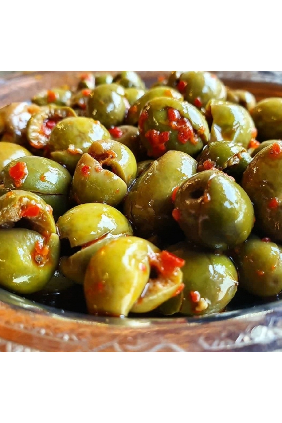 bakkal hasan Green Olive Antep Pitted Sweetened Stone Crushed 500 gr - Bakkal Hasan