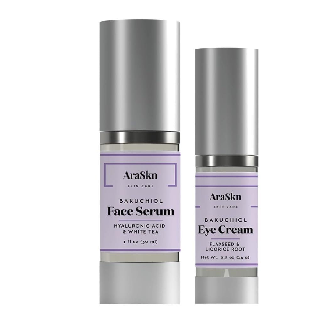 SKIN COMPATIBILITY: Works effectively for all skin types, helping to improve skin tone and maintain a youthful appearance. GENTLE FORMULATION: Suitable for daily use, morning and night, without causing the typical irritation associated with traditional retinol products. TARGETED TREATMENT: Face serum penetrates deeply to improve skin texture, while eye cream specifically addresses delicate eye area concerns. BAKUCHIOL BENEFITS: Natural retinol alternative that helps reduce the appearance of fine lines and wrinkles while being gentle on sensitive skin. DUAL PRODUCT SET: Complete skincare duo featuring both Bakuchiol Face Serum and Bakuchiol Eye Cream for comprehensive facial care.