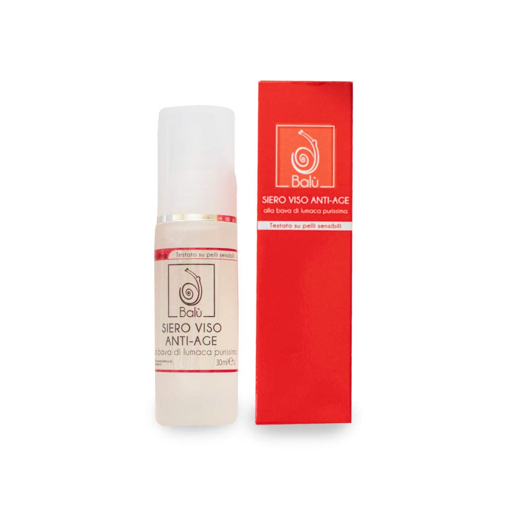 Made in Italy. Tested on sensitive hair. This serum has a light and silky texture thanks to its high concentration of highly pure snail mucin. It provides intensive moisturizing, revitalizing, restructuring, and anti-aging treatment for the skin of the face and neck. The serum formulation allows for deeper hydration and can be used alone or before applying your chosen cream. The snail mucin used is produced exclusively from Italian snails, raised using natural, non-invasive methods that cause no biological harm to the animals. It naturally contains a high quantity of active ingredients, such as collagen, elastin, retinol, glycolic acid, allantoin, ascorbic acid, tocopherol, peptides, and mucopoliscarides, which give this serum moisturizing, redensifying, antioxidant, and anti-wrinkle properties. It promotes cell turnover, improves skin elasticity, reduces wrinkles, and helps diminish the appearance of acne, scars, and blemishes. Furthermore, it keeps skin looking younger and firmer, reducing the effects of aging and providing a more even and radiant complexion. The presence of aloe vera enriches this serum with its moisturizing and soothing properties, leaving the face and neck feeling smooth and velvety. Additionally, it contains arinine, one of the amino acids that make up the skin's natural moisturizing factor, which adds to the pool of active ingredients already present in the snail mucin, providing a hydrating and conditioning action for the skin. Hypoallergenic fragrance INGREDIENTS Snail Secretion Filtrate, Aqua, Hydroxyethylcellulose, Glycerin, Aloe Barbadensis Leaf Juice, Arginine, Benzyl Alcohol, Parfum DIRECTIONS Apply the product twice daily, morning and evening, before the snail mucin anti-aging face cream, to a perfectly cleansed and dry face and neck. Allow to absorb completely. See moreBalù Bava de Lumaca Purissima sérum Visage Anti-Age Acne Macchie Cycatrices 30 mlDESCRIPTION DU PRODUIT DESCRIPTION DU PRODUIT Fabriqué en Italie. Testé sur les poils sensibles. Sérum à la texture légère et soyeuse grâce à la présence de bavoir d'escargot très pur en concentration élevée. Il offre un traitement intensif hydratant, revitalisant, restructurant et anti-upation pour la peau du visage et du cou. La formulation en sérum permet une hydratation plus profonde et peut être utilisée seul ou avant l'application de la crème visée. La bavoir d'escargot utilisée est produite exclusivement par des escargots italiens, élevées avec des méthodes naturelles, non invasives et qui ne présentent aucun dommage biologique à l'animal. Il contient naturellement une grande quantité d'actifs fonctionnels, tels que collagène, élastine, rétinol, acide glycolique, allantoine, acide ascorbique, tocophérool, peptides et mucopolissacarides, qui confèrent à cette sère propriétés hydratantes, redensifiantes, antioxydantes et antirides. Favorise le turnover cellulaire, améliore l'élasticité cutanée, atténue les rides, aide à réduire les signes d'acné, cicatrices et taches cutanées. En outre, il maintient la peau plus jeune et plus compacte, réduisant les effets du temps et donne une couleur plus homogène et lumineuse. La présence d'aloe vera enrichit ce sérum grâce à ses propriétés hydratantes et apaisantes, laissant la peau de visage et un col lisse et velouté. En outre, il contient une arinine, un des acides aminés constituant le facteur d'hydratation naturelle de l'épiderme, qui ajoute au pool d'actifs déjà présents dans la bavoir d'escargot une action hydratante et conditionnante pour la peau. Parfum hypoallergénique INGRÉDIENTS Snail Secretion Filtrate, Aqua, Hydroxyethylcellulose, Glycerin, Aloe Barbadensis Leaf Juice, Arginine, Benzyl Alcohol, Parfum MODE D'EMPLOI Appliquer le produit, deux fois par jour matin et soir, avant la crème visage anti-age à la bavette d'escargot, sur le visage et le cou parfaitement nettoyés et sec et faire absorber complètement. Voir plus