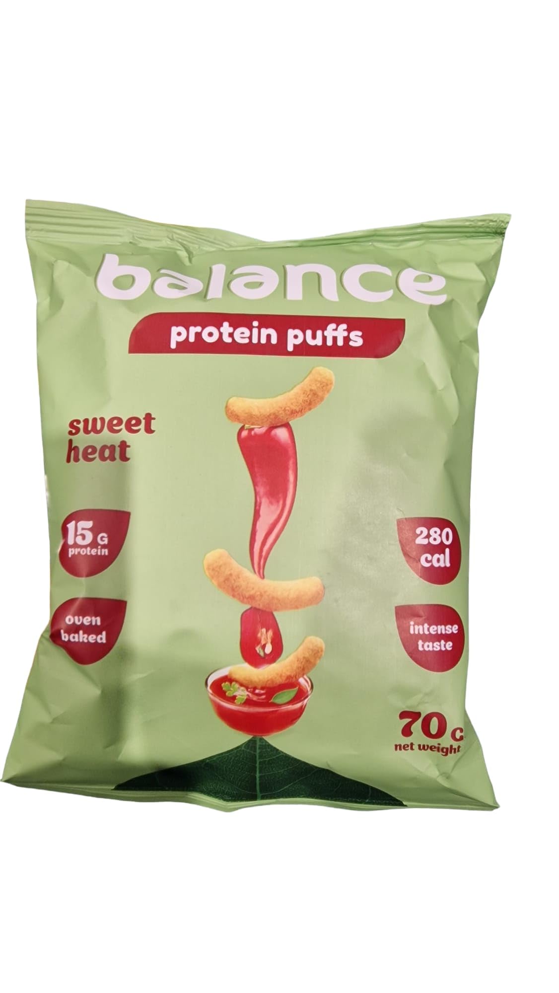 balance protein 15 gram puffs sweet heat. 10X70 gram