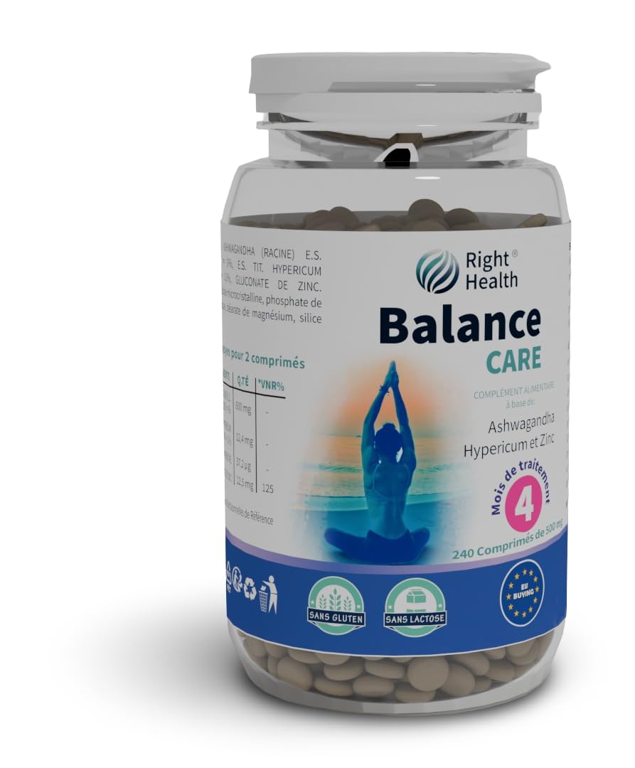 BALANCE CARE: 240 comprim s (4 mois). 600mg Ashwagandha 5% Withanolides Millepertuis Hypericine. Bien- tre Physique & Mental Concentration aide en retrouvant bonne humeur dans conditions de stress.