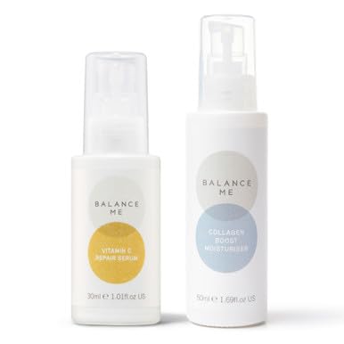 Balance Me Hydrate + Glow Bio-Active Skincare Duo - Vitamin C Repair Serum & Collagen Boost Moisturizer - Vegan & Cruelty-Free - Smooth Complexion & Reduce Hyperpigmentation