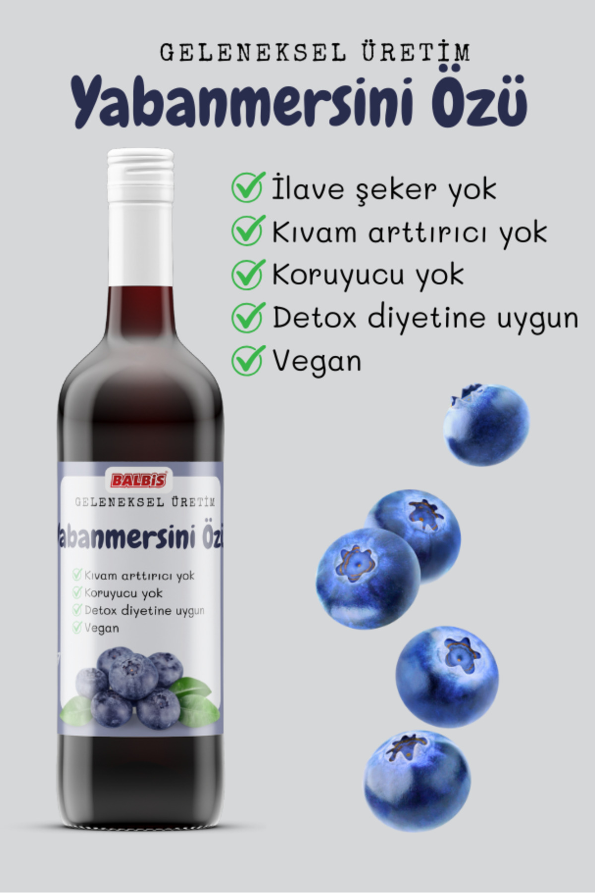 :Carefully processed blueberries are transformed into blueberry extract using traditional methods. It is 100 natural and vegan, suitable for vegetarian diets. Our product is suitable for both adults and children. This product, offered in a 250 cc glass bottle, contains essential nutrients such as vitamin C, iron, polyphenols, and natural antioxidants. It is free from any additives, preservatives, artificial sweeteners, thickeners, added sugars, and food coloring. It is an ideal choice for those who prefer a healthy lifestyle and clean ingredients.