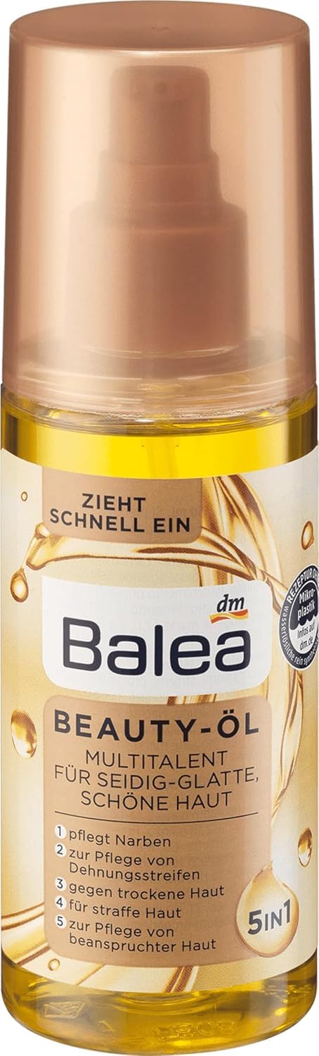 Absorbs quickly - Multi-talented for smooth, silky skin - Treats scars and stretch marks - True versatility: Balea Beauty Oil is the special treatment for smooth, silky skin. The pleasantly light formula with selected nourishing oils such as jojoba and sea buckthorn oils absorbs quickly and moisturizes for 24 hours. This cream also reduces the feeling of tightness on scars and provides soothing care for stretch marks. Skin tolerance dermatologically tested. Formula free of microplastics and water-soluble synthetic polymers. SAFETY WARNING Warning: Avoid contact with eyes. If the product gets into the eyes, rinse thoroughly with clean water. If irritation occurs, discontinue use. Keep out of reach of children.
