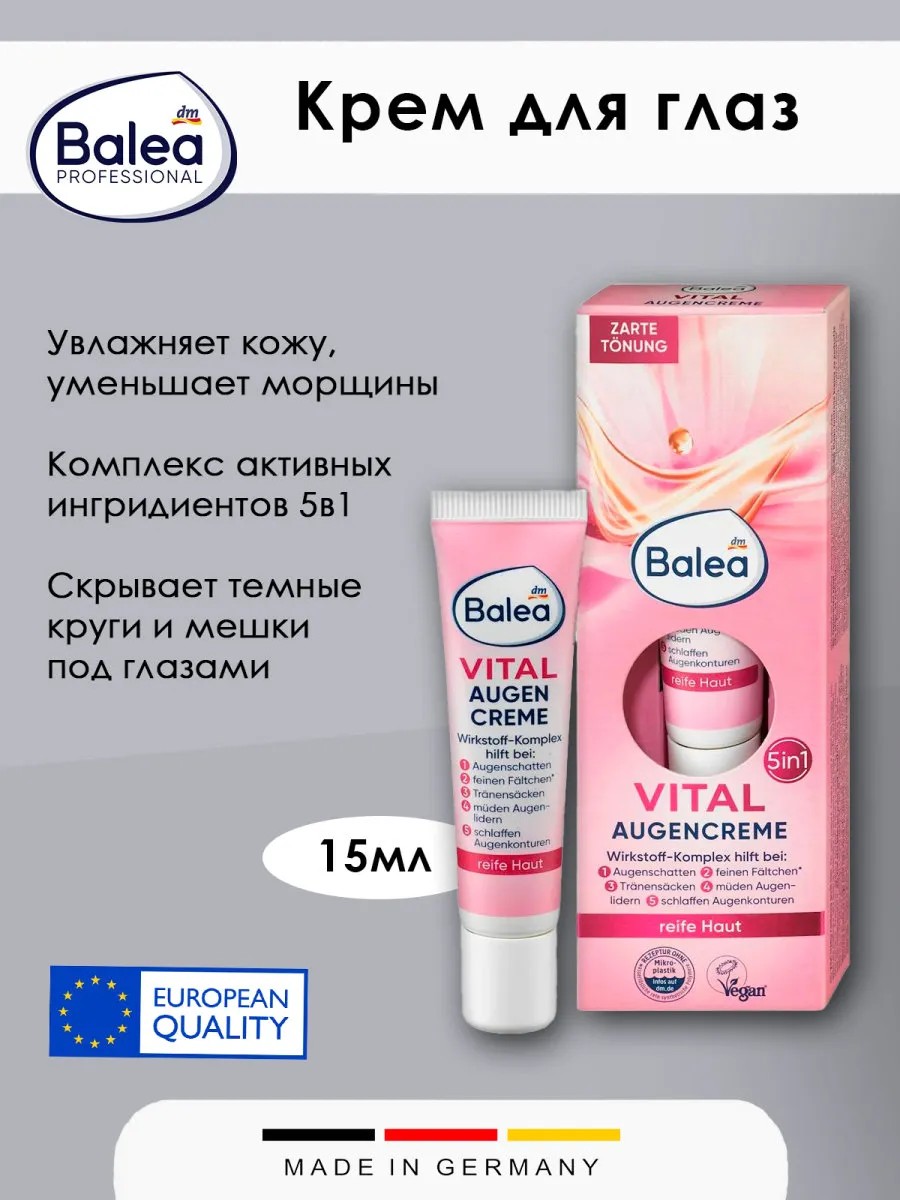 Крем для глаз Balea - Vital, с комплексом активных ингредиентов 5 в 1, 15 мл, 1 шт