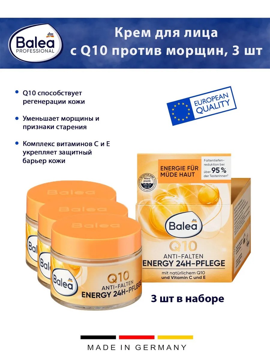 Крем для лица Balea с Q10 Энергия против морщин 24-часовой уход, 50 мл, 3 шт