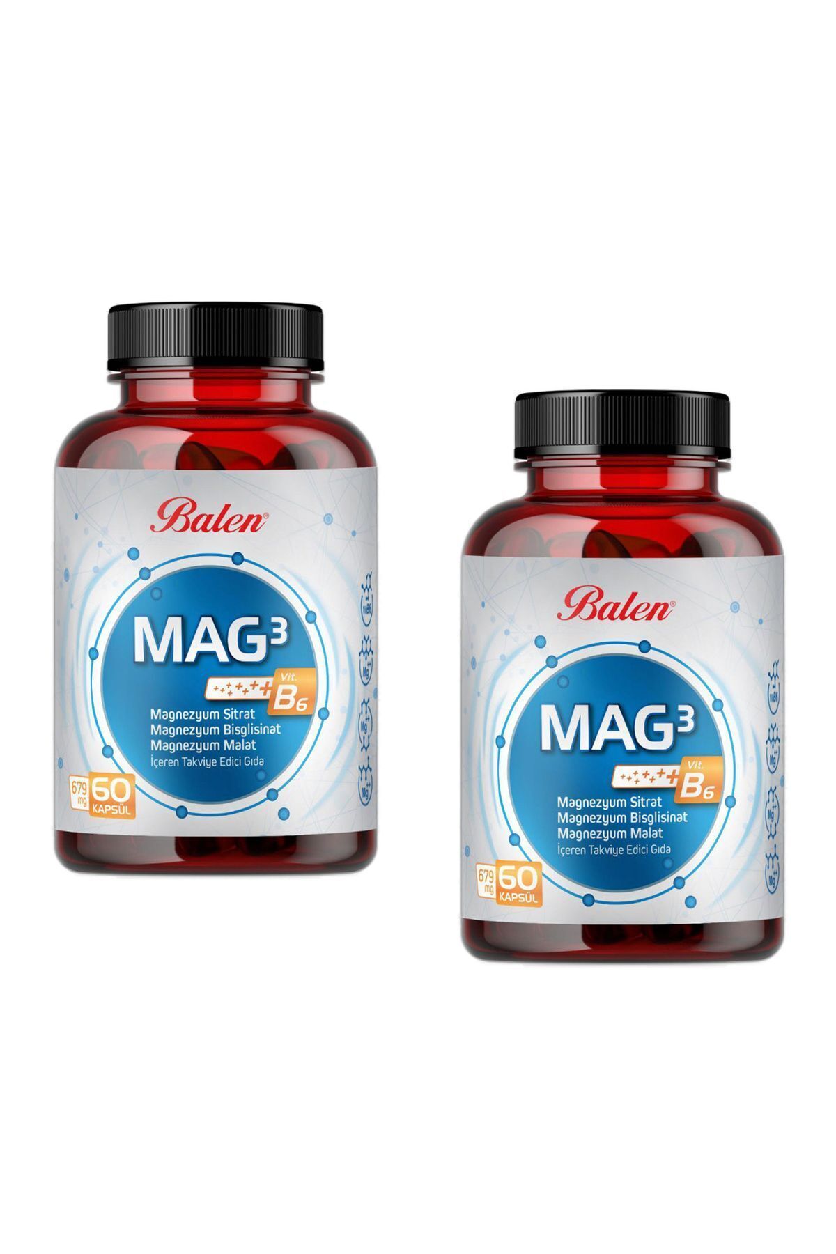 Balen Mag 3 Magnesium Citrate & Bisglycinate & Malate 679 Mg 60 Cap. X 2 Pieces