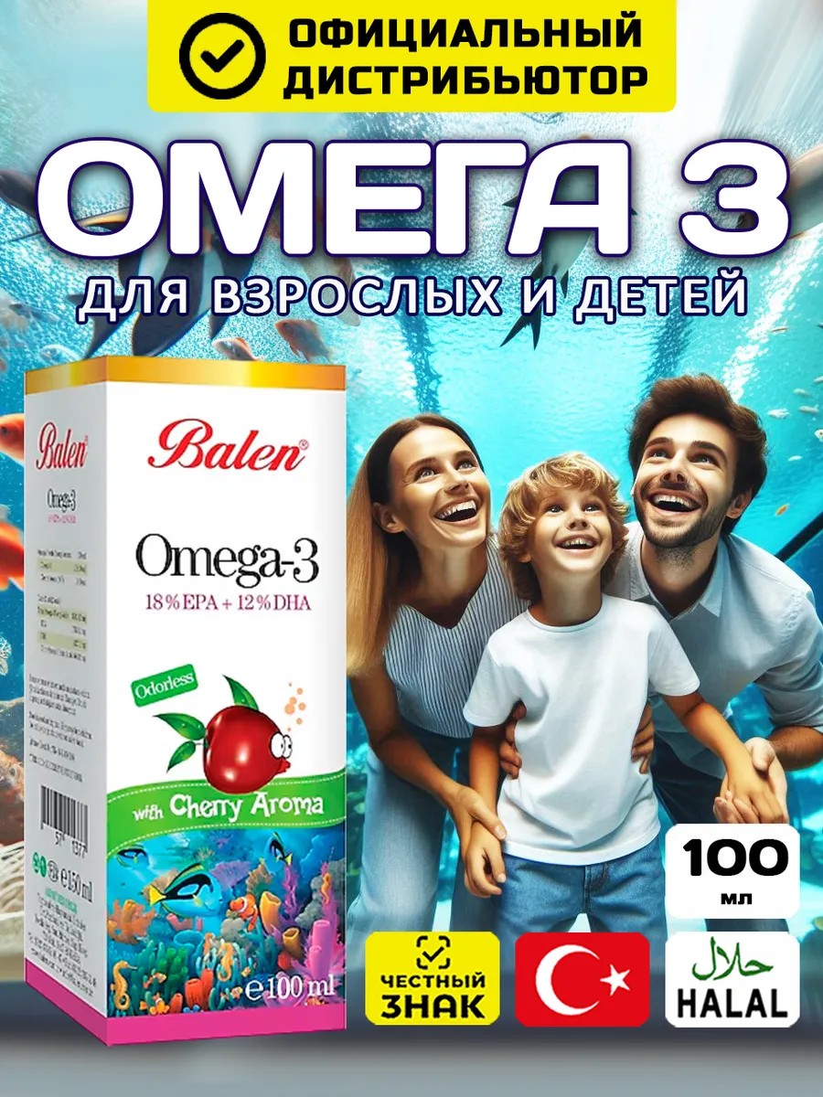 Balen Омега 3 для детей турция сироп вкус Вишня 100 мл
