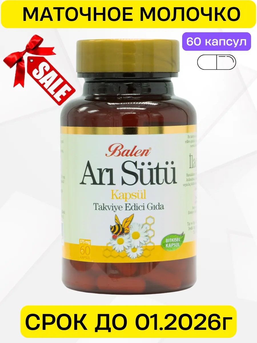 | Комплектация | Пластиковая баночка крышкой; баночка полностью обернута с защитную слюду; средства от влаги; 60 капсул с Пчелиным маточным молочком Balen Турция |