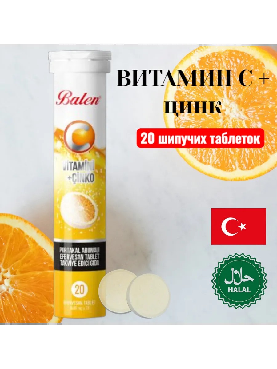 Витамин С и цинк от Balen — это вкусный и удобный способ поддержать иммунитет и общее самочувствие. В каждой упаковке вы найдете 20 шипучих таблеток с освежающим вкусом апельсина, которые легко растворяются в воде. Витамин С и цинк — важные антиоксиданты, которые помогают защитить организм от свободных радикалов и укрепляют защитные силы организма. Шипучие таблетки Balen — это простой и эффективный способ позаботиться о своем здоровье каждый день.Витамин С 1000 мг., цинк 10 мг.