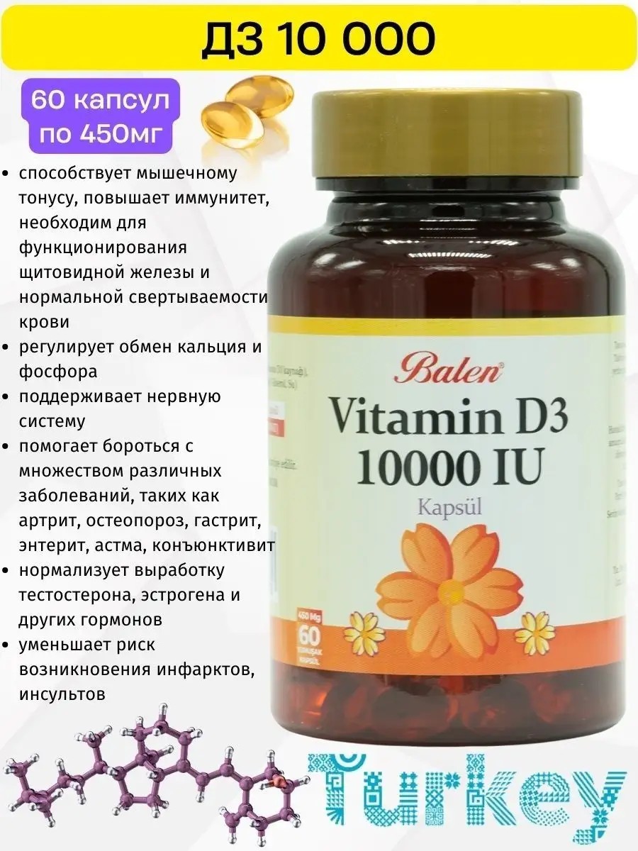Витамин D3 необходим для здоровья как взрослым так и детям. Если его уровень недостаточен у детей это может привести к рахиту, а у взрослых к остеомаляции, или проще говоря, к размягчению костей. Этот витамин необходим для процесса роста и развития клеток. Также витамин Д необходим для нервной гормональной и иммунной систем. Витамин Д обеспечивает нормальное развитие скелета. Отвечает за всасывание кальция и фосфора, участвует в образовании белка транспортирующего кальций. Рекомендуется принимать по одной мягкой желатиновой капсуле каждый день с жиросодержащей едой или по назначению врача.