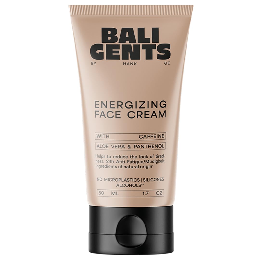 Natural ingredients: Bali Gents moisturizer for men is completely free of microplastics, silicones and alcohol. The high-quality, plant-based active ingredients provide protective care and emphasize the beauty of your skin. Easy to use: simply apply to the face and neck in the morning after cleansing. Gently massage until our men's care cream is completely absorbed, for a well-groomed start to the day. Vital complexion all day long - the light, quickly absorbed formula of our facial care for men provides fresh, invigorating skin with a long-lasting moisture boost - without any grease or stickiness. Intensive hydration and protection – thanks to powerful active ingredients such as caffeine, aloe vera and panthenol, our facial moisturizer deeply hydrates your skin and thus reduces visible signs of fatigue. Energy kick for the skin: our Energizing Face Cream stimulates tired skin and provides a fresh, vital appearance. The 24-hour Face Care formula provides long-lasting moisture and leaves the skin feeling fresh.Bali Gents Energizing Face Cream – vitaliserende gezichtscrème voor mannen – hydraterende gezichtscrème voor heren met cafeïne en aloë vera – antioxidant gezichtsverzorging – 50 mlNatuurlijke ingrediënten: Bali Gents vochtinbrengende crème voor mannen is volledig vrij van microplastic, siliconen en alcohol. De hoogwaardige, plantaardige werkzame stoffen zorgen voor een beschermende verzorging en benadrukken de schoonheid van je huid. Eenvoudig in gebruik: 's ochtends na het reinigen eenvoudig op het gezicht en de hals aanbrengen. Zacht inmasseren tot onze verzorgende crème voor mannen volledig is ingetrokken, voor een verzorgde start van de dag. Vitale teint de hele dag – de lichte, snel intrekkende formule van onze gezichtsverzorging voor mannen zorgt voor een frisse, verkwikkende huid met langdurige vochtboost – geheel zonder vet of te plakken. Intensieve hydratatie en bescherming – dankzij krachtige werkzame stoffen zoals cafeïne, aloë vera en panthenol hydrateert onze gezichtsmoisturizer je huid diep en vermindert zo zichtbare tekenen van vermoeidheid. Energiekick voor de huid: onze Energizing Face Cream stimuleert vermoeide huid en zorgt voor een frisse, vitale uitstraling. De 24-uurs Face Care-formule hydrateert langdurig en laat een fris huidgevoel achter.