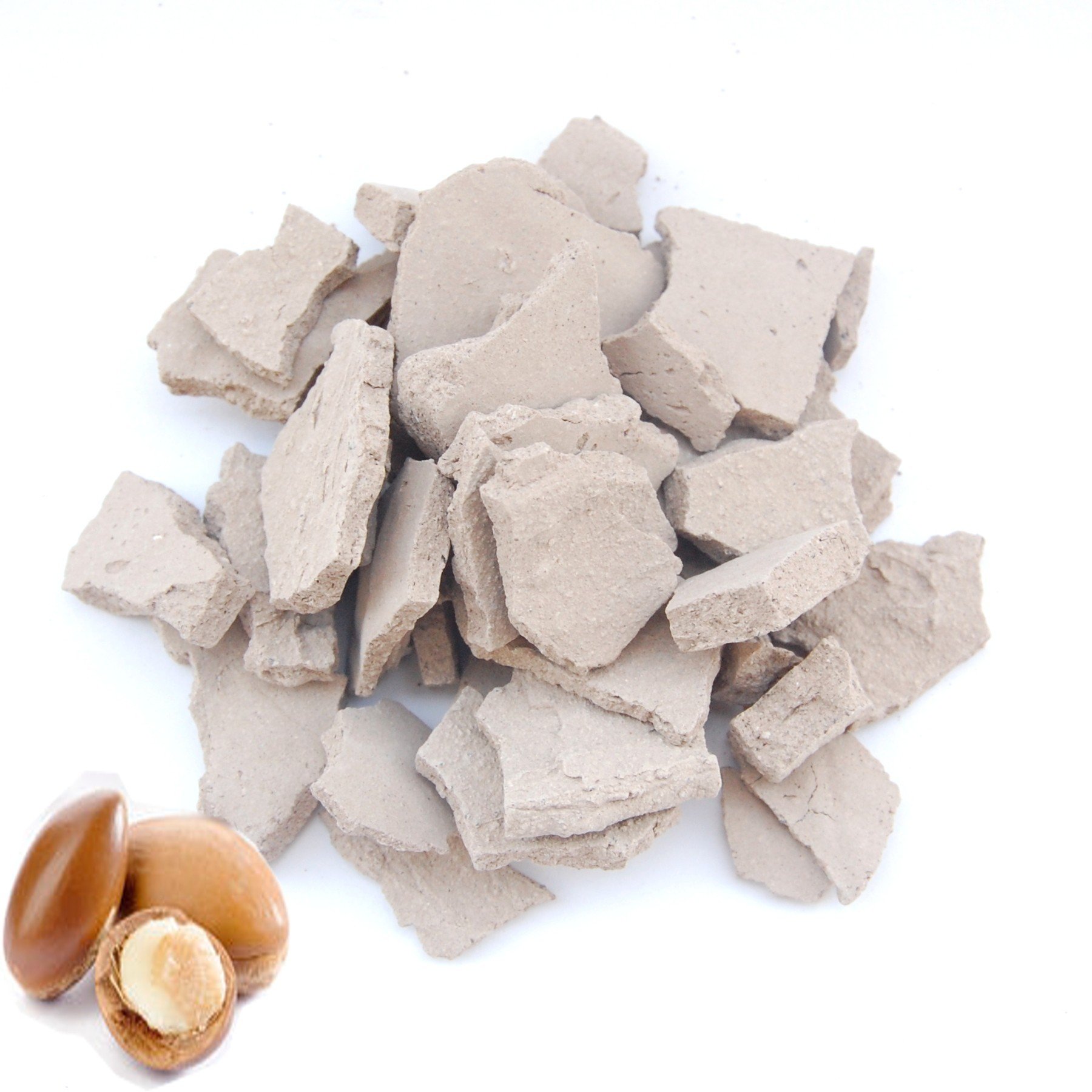 Rhassoul Ghassoul with Organic and Natural Argan Powder - 100g : A fusion of Rhassoul (black clay) and Argan powder. Discover the properties of these two ingredients below. BALLA COSMETICS INGREDIENTS Rhassoul Ghassoul with Argan Powder