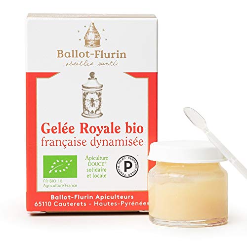 : The pursuit of 100 French, live Royal Jelly. Sourced from our hives located in the heart of protected terroirs, our organic Royal Jelly is the result of a meticulous, artisanal harvest. Guaranteed unfrozen and unprocessed, this high-quality apitherapy preparation retains all of its native nutrients. Its natural richness in vitamins and minerals makes it a valuable ally for reducing fatigue and supporting the normal function of the immune system. By respecting the bees' biological rhythm and using immediate hand-packing, we guarantee a premium, highly bioavailable product for real and natural support of your physical and mental vitality. Ingredients: 100 French royal jelly . Ingredients from Organic Farming. Certified by FR-BIO-10BALLOT-FLURIN, APITHERAPY EXPERTS: A pioneer in gentle beekeeping since 1977, Ballot-Flurin designs and manufactures its products in the Hautes-Pyrénées region of France. Each product is developed with respect for bees and nature, prioritizing short supply chains and organic ingredients. A guarantee of quality and ethics for a treatment that is as effective as it is respectful. DIRECTIONS FOR USE: For optimal bio-energetic effect, take one 400mg dose (spoon provided) every morning on an empty stomach. Allow it to dissolve under your tongue while relaxing, then wait 15 minutes before eating. This 10g bottle provides a 25-day course. Store in the refrigerator, protected in its natural organic sheep's wool insulation. ? IMMUNITY ENERGY: Rich in Vitamins B1, B2, B3, B5, and Copper, and a source of Potassium, Zinc, and Phosphorus, it contributes to the normal functioning of your immune and nervous systems. It also helps protect your cells against oxidative stress and supports your mental performance. It's the ideal ally to support you during periods of intense activity or seasonal transitions, while respecting your body's balance. VITAL FORCE HIGH NUTRITION: A raw and active composition. Naturally rich in essential nutrients and boasting a guaranteed 10-HDA content ( 1.8 ), this royal jelly helps reduce fatigue and supports normal energy metabolism. Its purity is rigorously controlled to guarantee you a "living" product, without any additives, preservatives, or industrial processing. THE EXCELLENCE OF FRENCH ROYAL JELLY: Lovingly harvested in our protected terroirs and jarred in the Hautes-Pyrénées, our organic Royal Jelly is a treasure trove of vitality. Produced using "No Kill" beekeeping practices that respect the natural rhythm of the bees and never kill the queen, it offers exceptional quality, guaranteed never frozen and hand-jarred to preserve its original integrity.Description du produit L'exigence d'une Gelée Royale 100 française et vivante. Issue de nos ruchers installés au cœur de terroirs préservés, notre Gelée Royale bio est le fruit d'une récolte artisanale d'une grande rigueur. Garantie non congelée et non transformée, cette préparation de haute qualité apithérapique préserve l'intégralité de ses nutriments natifs. Sa richesse naturelle en vitamines et minéraux en fait une alliée précieuse pour réduire la fatigue et soutenir le fonctionnement normal du système immunitaire. En respectant le rythme biologique des abeilles et une mise en pot manuelle immédiate, nous vous garantissons une matière noble, hautement biodisponible, pour un soutien réel et naturel de votre vitalité physique et intellectuelle. Ingrédients 100 gelée royale française. ingrédients issus de l'Agriculture Biologique. Certifié par FR-BIO-10BALLOT-FLURIN, EXPERT EN APITHÉRAPIE : Pionnier de l'Apiculture DOUCE depuis 1977, Ballot-Flurin conçoit et fabrique ses soins dans les Hautes-Pyrénées en France. Chaque produit est élaboré dans le respect des abeilles et de la nature, en privilégiant les circuits courts et les ingrédients biologiques. Un gage de qualité et d'éthique pour un soin aussi efficace que respectueux. CONSEIL D'UTILISATION : Pour un effet bio-énergétique optimal, prenez chaque matin à jeun une dosette de 400mg (cuillère fournie). Laissez fondre sous la langue en vous relaxant, puis attendez 15 minutes avant de vous alimenter. Ce flacon de 10g vous accompagne pour une cure de 25 jours. À conserver au réfrigérateur, protégée dans son isolant naturel en laine de mouton bio. ? IMMUNITÉ ENERGIE : Elle est riche en en Vitamine B1, B2, B3, B5 et Cuivre et source de Potassium, Zinc et Phosphore : elle participe au fonctionnement normal de vos systèmes immunitaire et nerveux. Elle aide également à protéger vos cellules contre le stress oxydatif et soutient vos performances intellectuelles. C'est l'alliée idéale pour accompagner les périodes d'activité intense ou les transitions saisonnières, tout en respectant l'équilibre de votre corps. FORCE VITALE HAUTE NUTRITION : Une composition brute et active. Naturellement riche en nutriments essentiels et affichant une teneur garantie en 10-HDA ( 1,8 ), cette gelée royale contribue à réduire la fatigue et soutient un métabolisme énergétique normal. Sa pureté est rigoureusement contrôlée pour vous garantir un produit "vivant", sans aucun additif, conservateur ou transformation industrielle. L'EXCELLENCE DE LA GELÉE ROYALE FRANÇAISE : Récoltée avec amour dans nos terroirs préservés et mise en pot dans les Hautes-Pyrénées, notre Gelée Royale bio est un trésor de vitalité. Issue d'une apiculture "No Kill" qui respecte le rythme naturel des abeilles sans jamais tuer la reine, elle offre une qualité rare, garantie non congelée et mise en pot à la main pour préserver son intégrité originelle.Ballot-Flurin - Gelée Royale Française Bio Dynamisée 10g - Gelée royale 100 bio Française - Énergie et Immunité Naturelle - Fabriqué en France