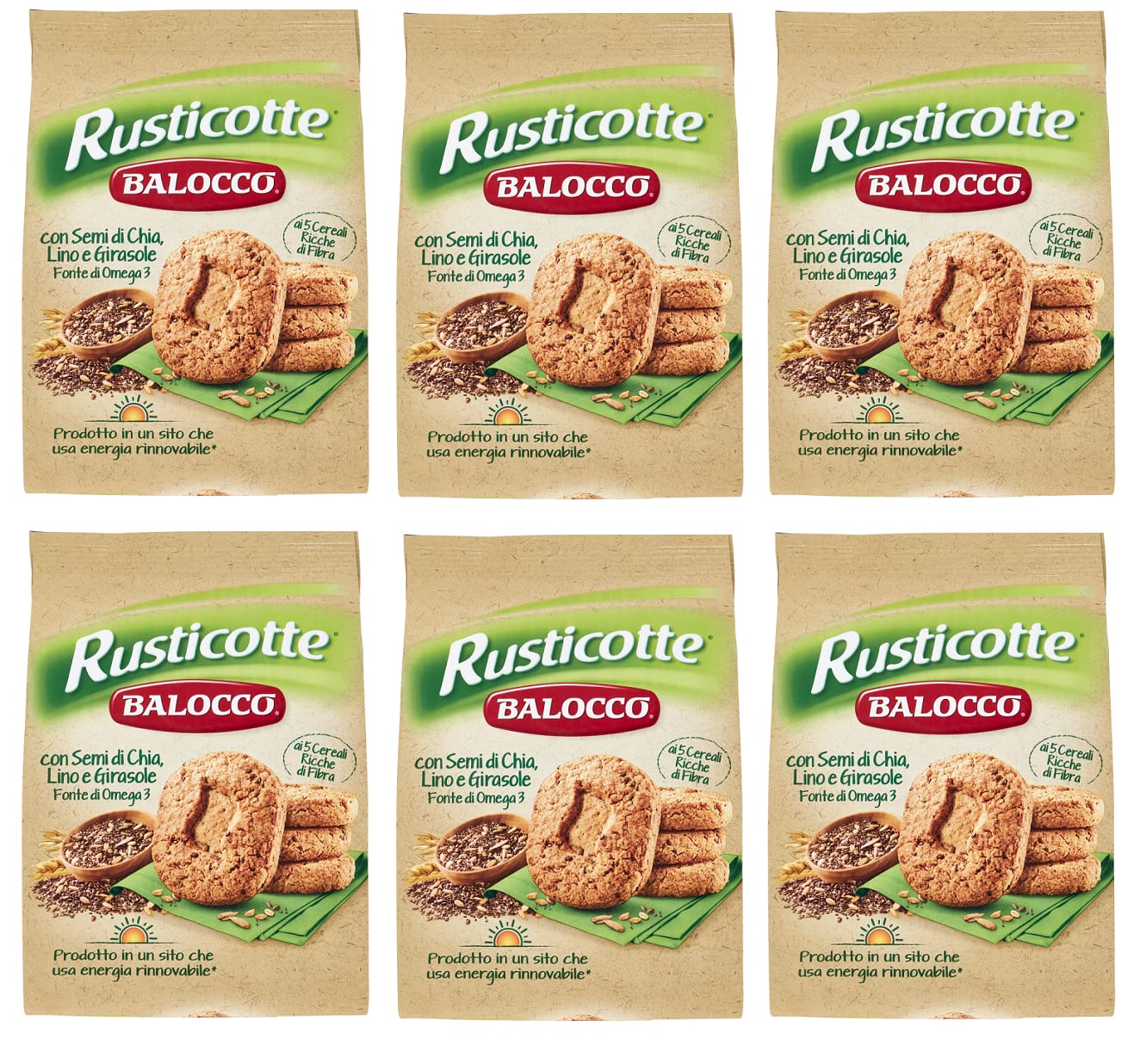 Balocco Balocco Rusticotte Biscotti Integrali ai 5 Cereali Whole Grain with 5 Cereals with Chia Seed Flax Seed and Sunflower Seed 100% Italian Cookies 700g