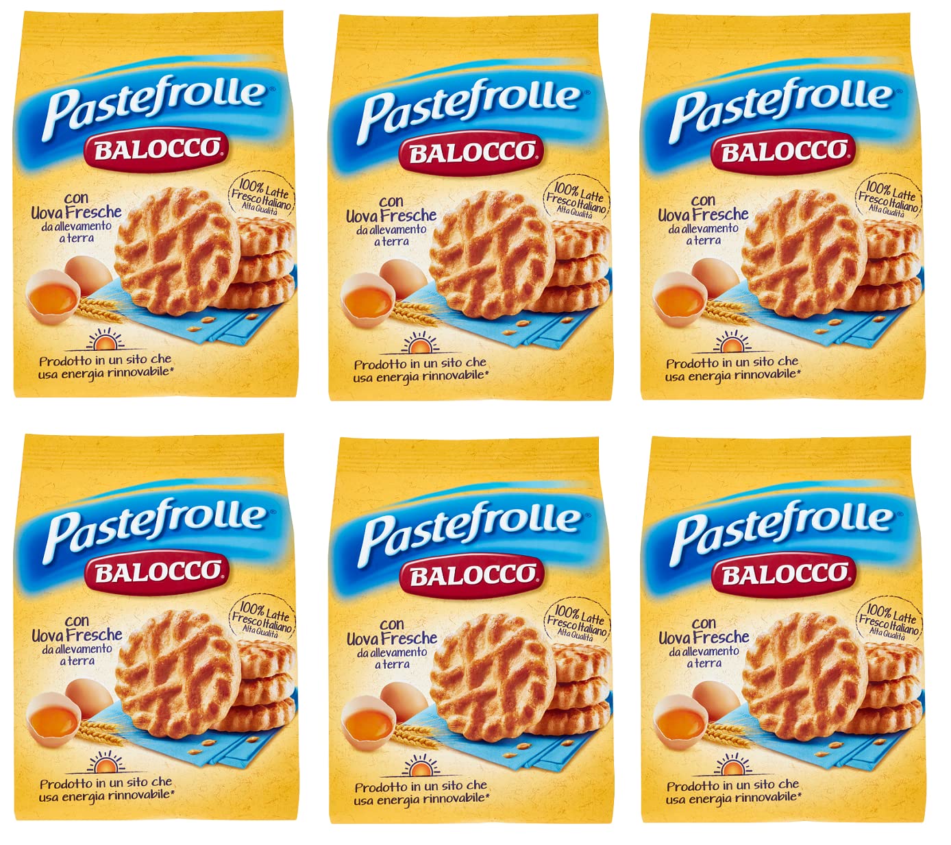 Balocco Lot de 6 rouleaux de pâte Biscotti con latte italiano e uova frais biscuits avec lait italien et œufs frais 100 biscuits italiens 350 g