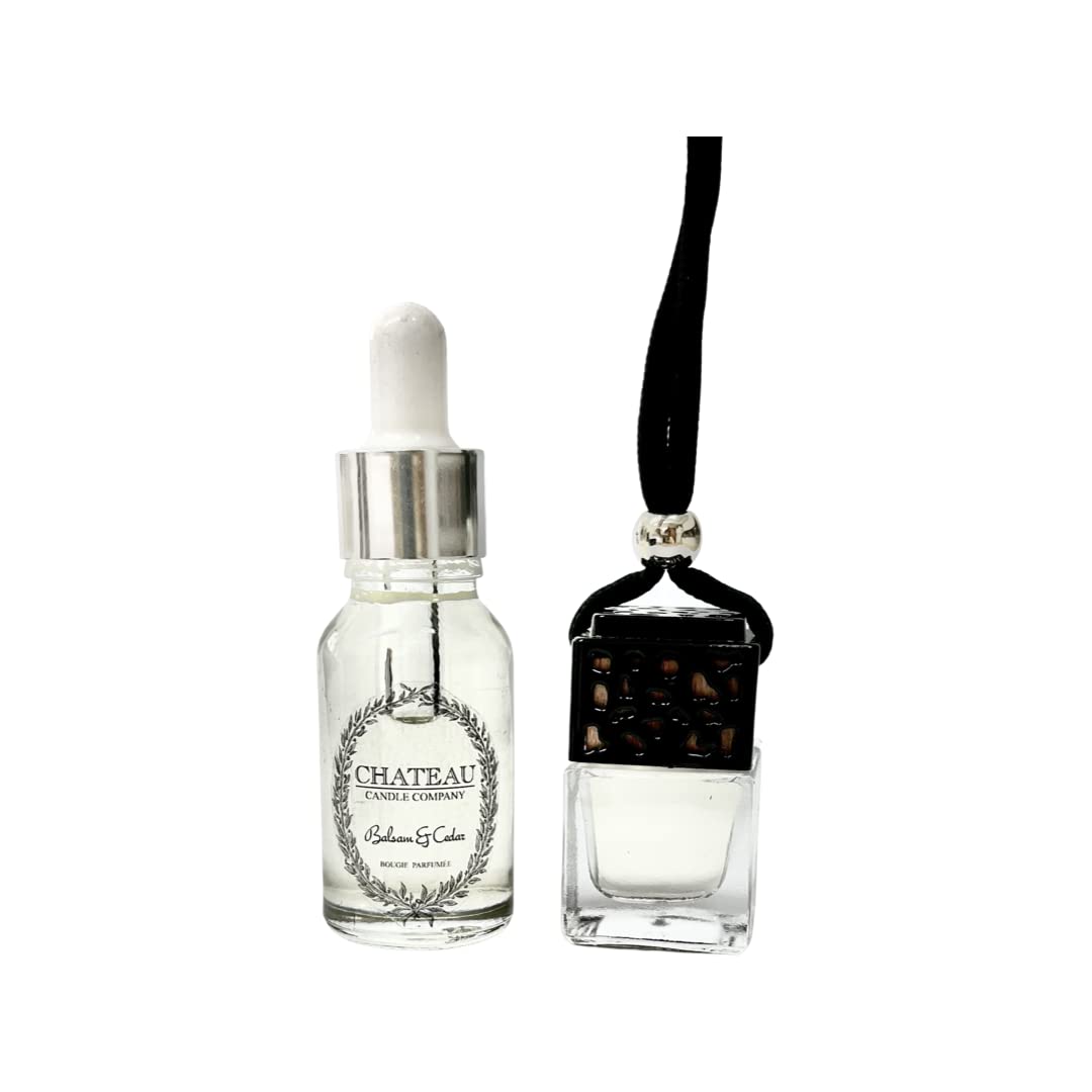 Balsam and Cedar Luxury Car Scent Freshener Diffuser w/ Refill Dropper Car Perfume Auto Odor Eliminator Refillable Hanging Car Freshener | Perfect Holiday Gift