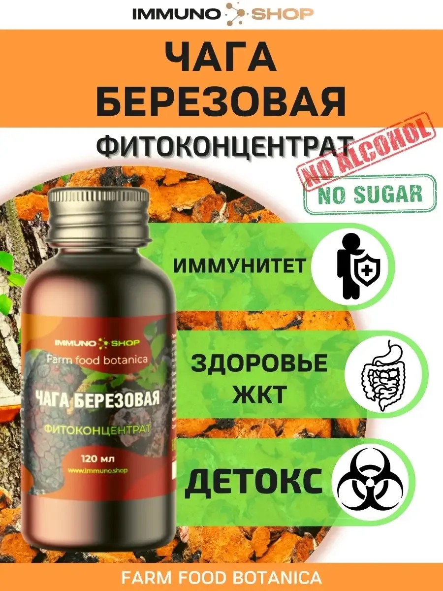 | Комплектация | чага березовая фитоконцентрат 120 мл. |