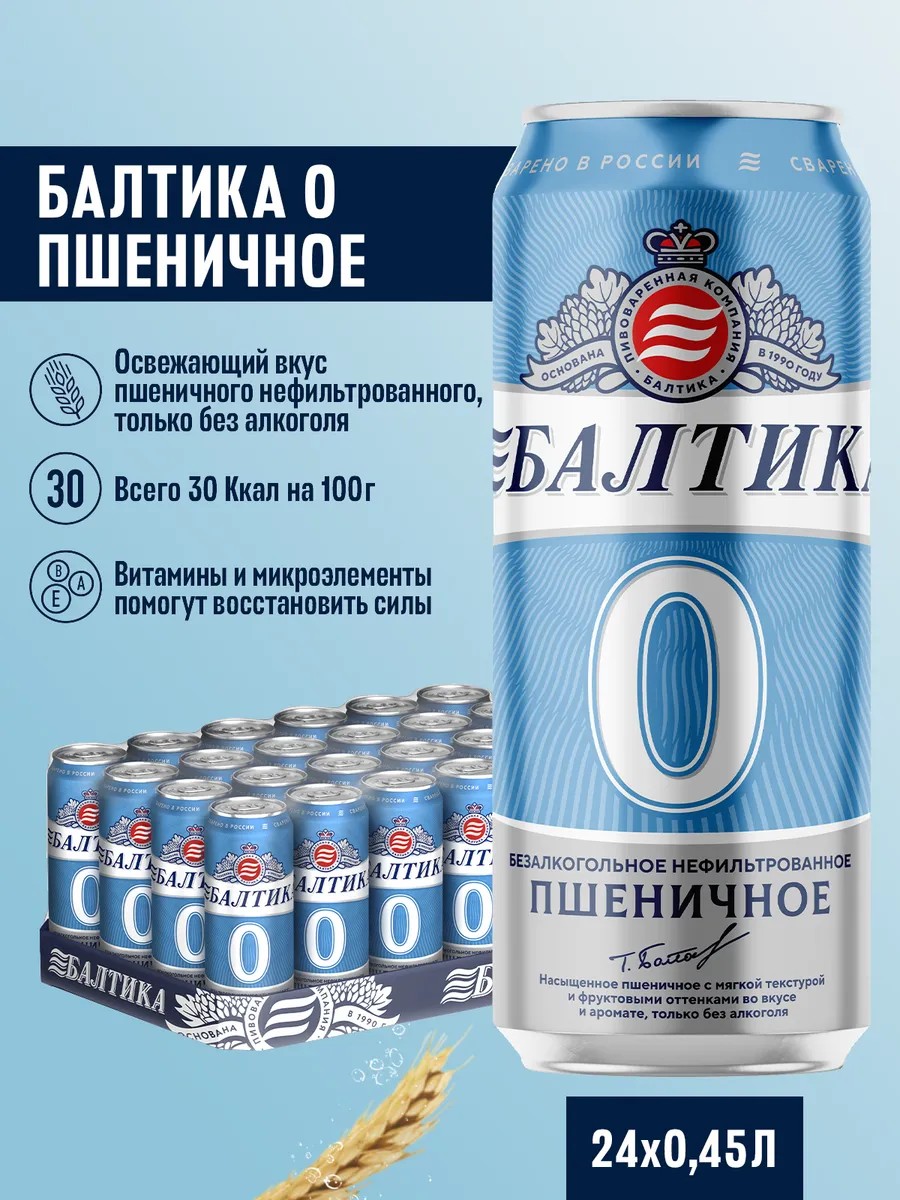 Балтика Пиво пшеничное безалкогольное 24 шт х 0,45 л